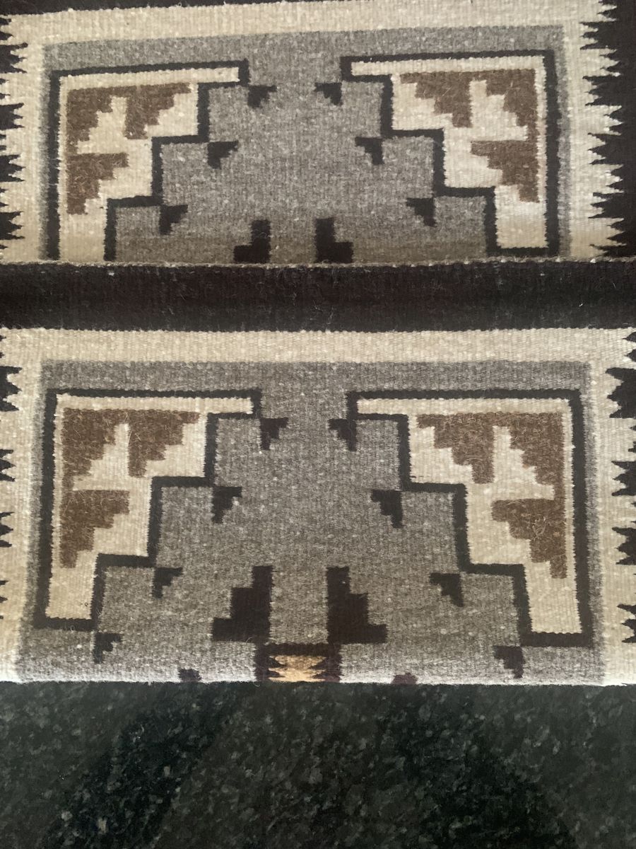 THIS GEM IS A TWO GREY HILLS PATTERN . ALL NATURAL WOOL . SUPER FINE AND TIGHT WEAVE . MEASURES 18 INCHES BY 30 INCHES .FROM A SMOKE AND PET FREE HOME . ASKING $320 .