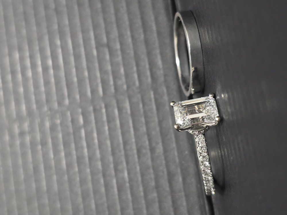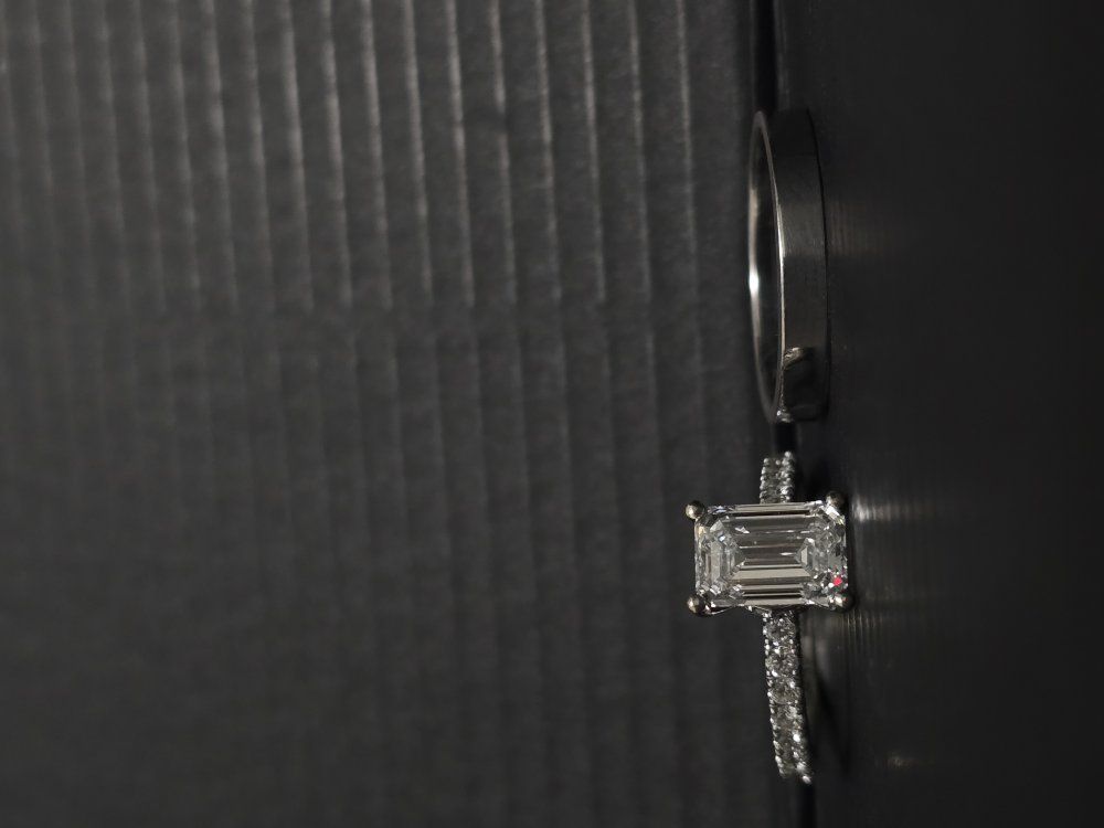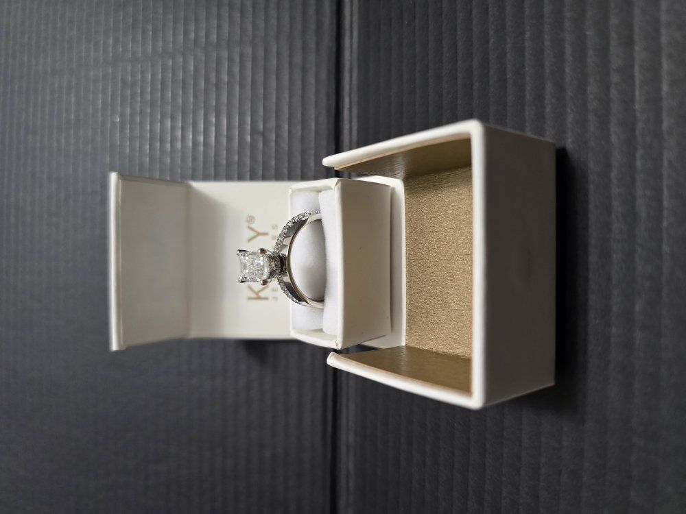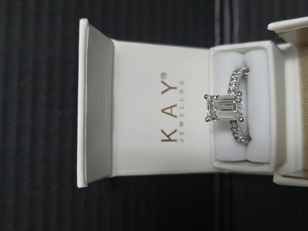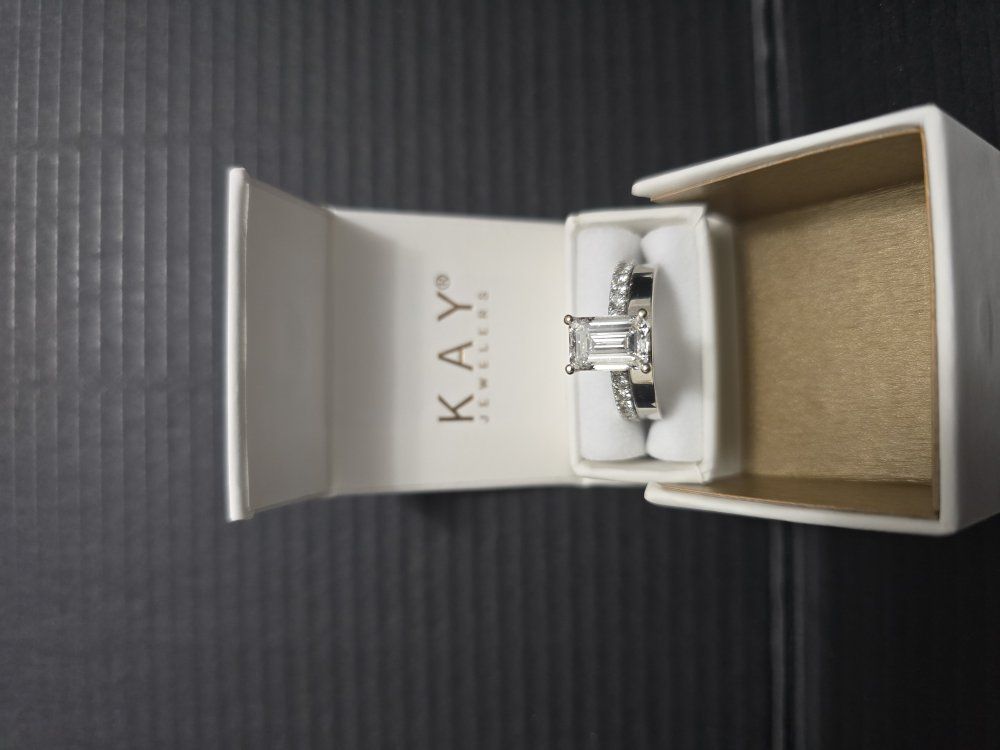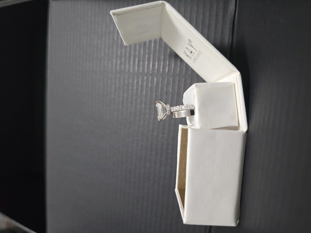 Ring: size 7 Neil Lane emerald cut 2 1/2 ct 14k white gold diamond engagement ring ( lab grown)