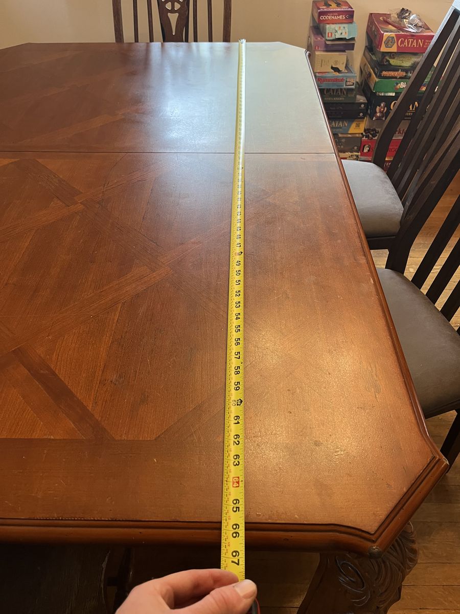 A little squeaky but a nice looking table. chairs not included