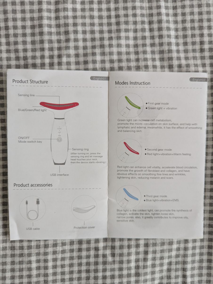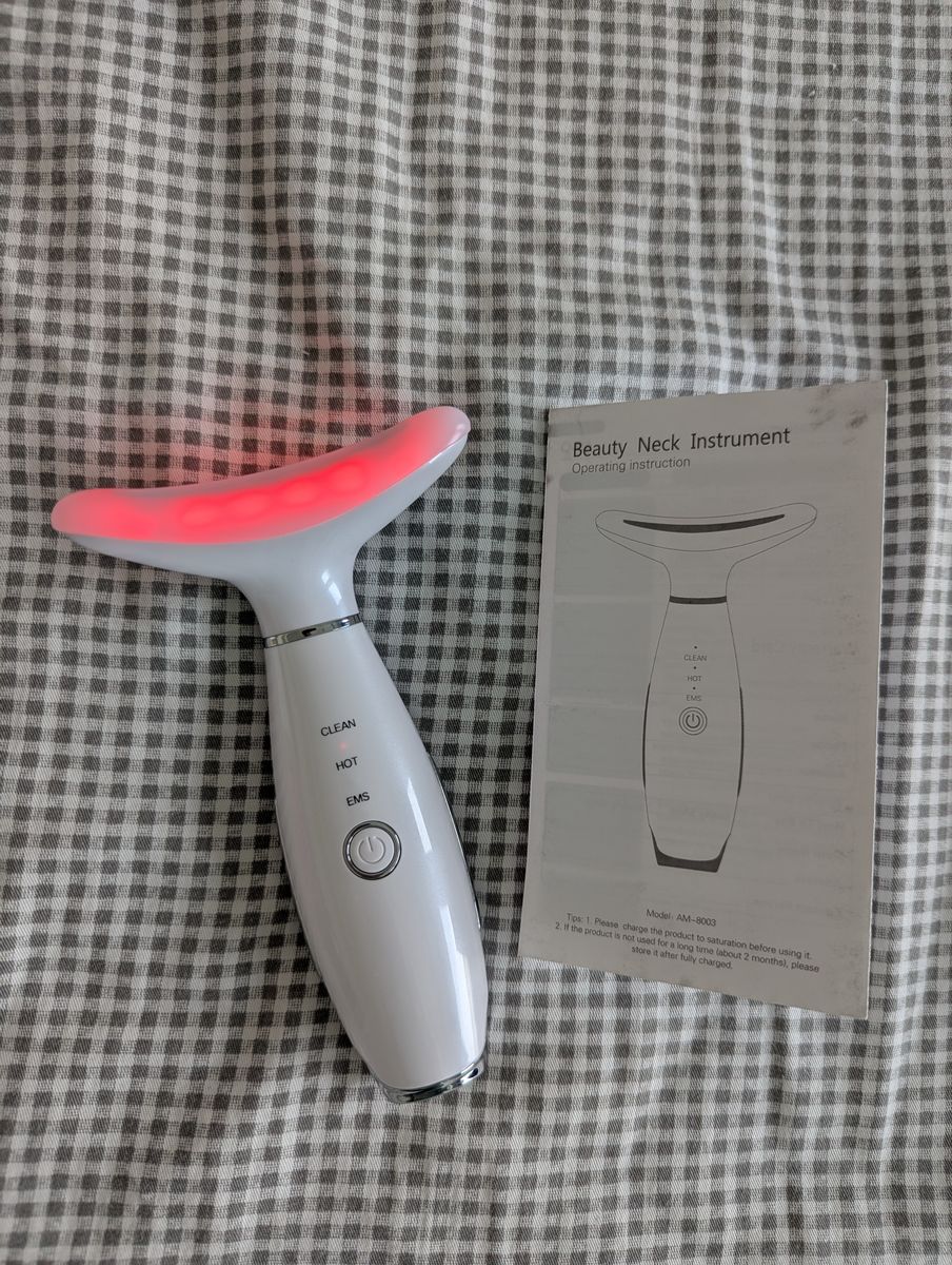 VenmoFeatures LED, Thermal, and Vibration modes. Instruction booklet, charging cable, and device with protective cover included.