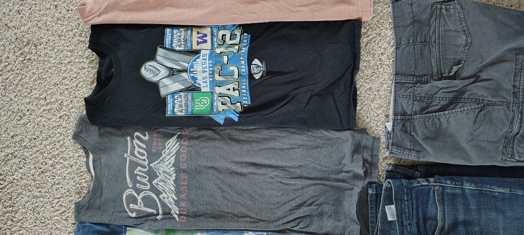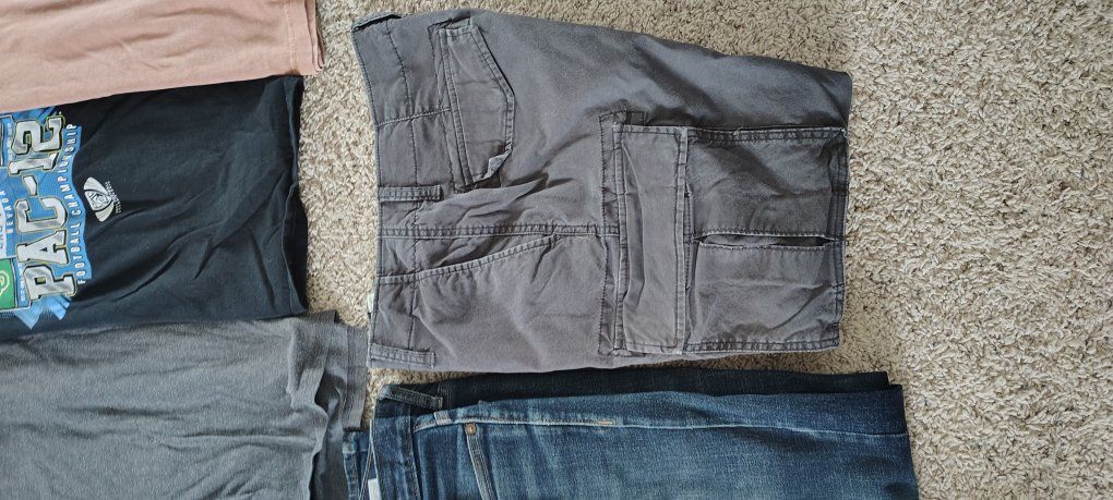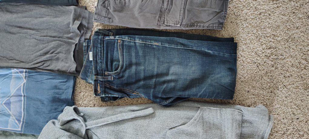 VenmoMen's shirts size M $8. Woven hoodie size Tall XL $10. Jeans skinny Old Navy size 30x34 $10. Straight Cargo pant size 30x34 $10.