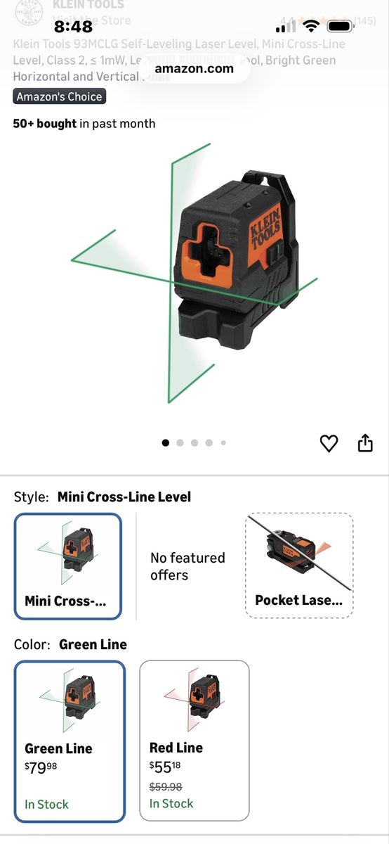 Nice, like new self leveling cross line green laser level in good condition! Not new, but in great shape! still works great! This laser level is 79.99 or more on Amazon right now as shown in photos! Don’t pay retail prices, call Dustin instead at 801-205-3404, I need it gone!