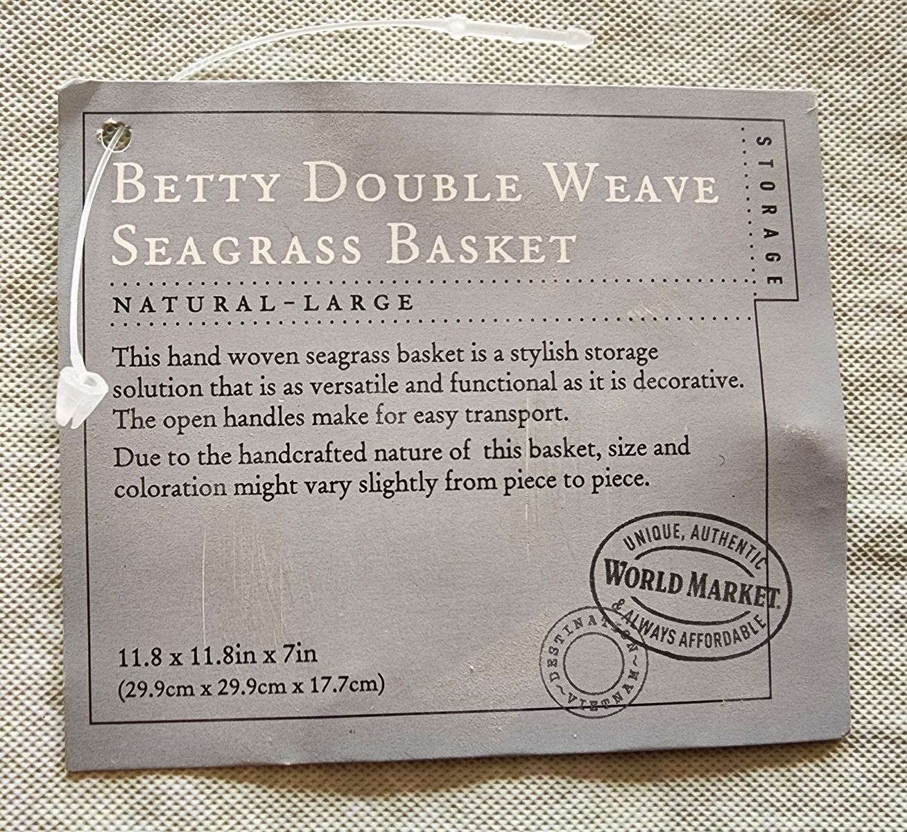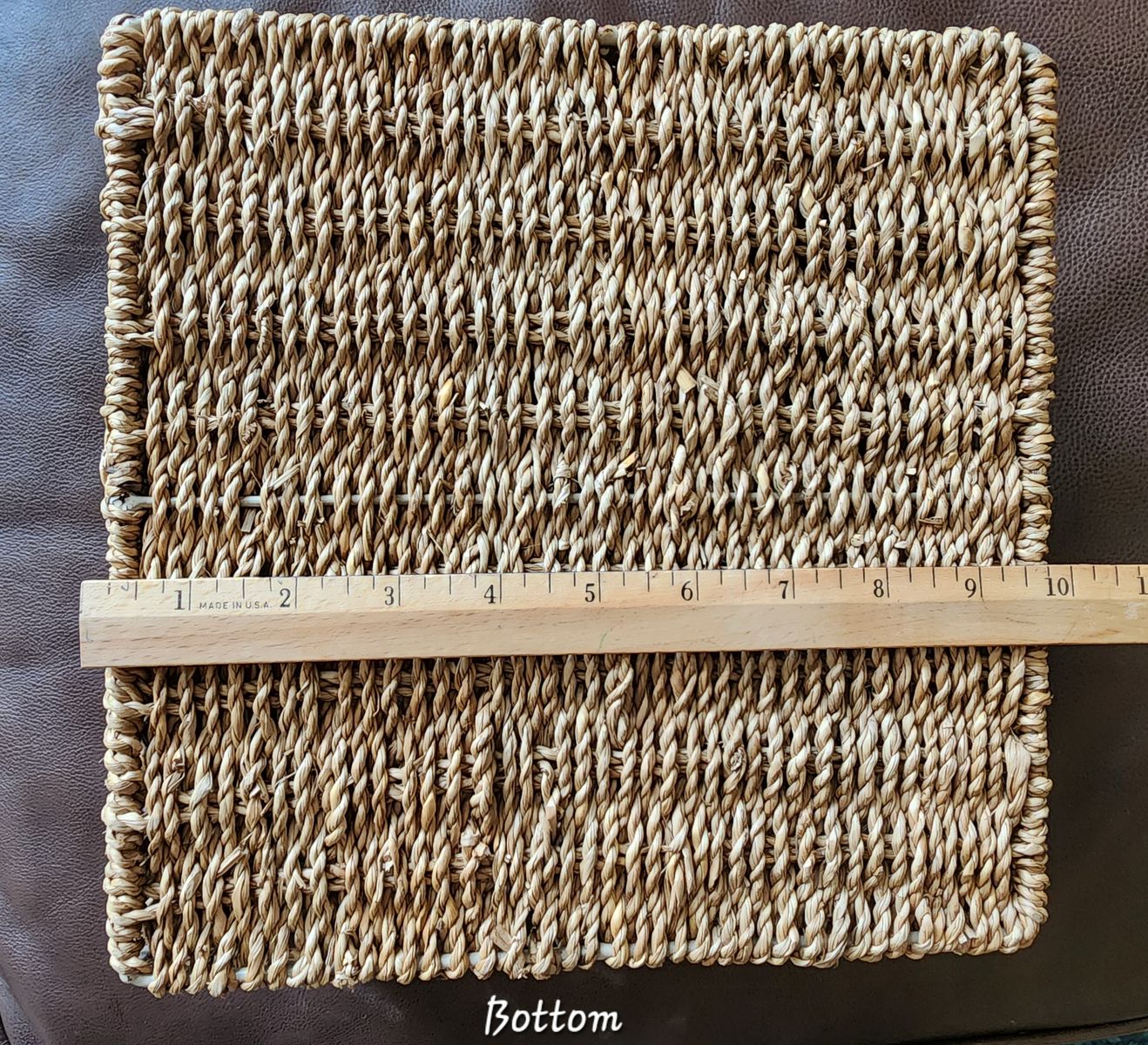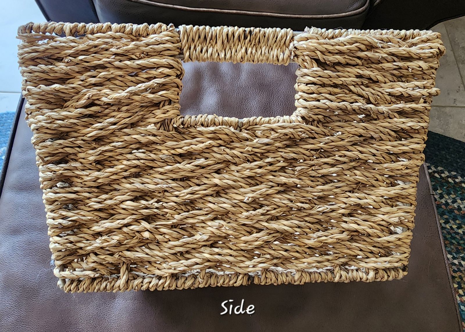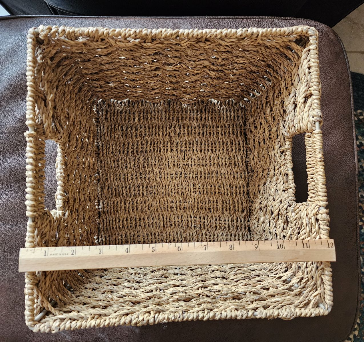 VenmoSquare, handwoven basket on metal frame, with open handles. Decorative and sturdy storage. 11.8"x11.8"x7".