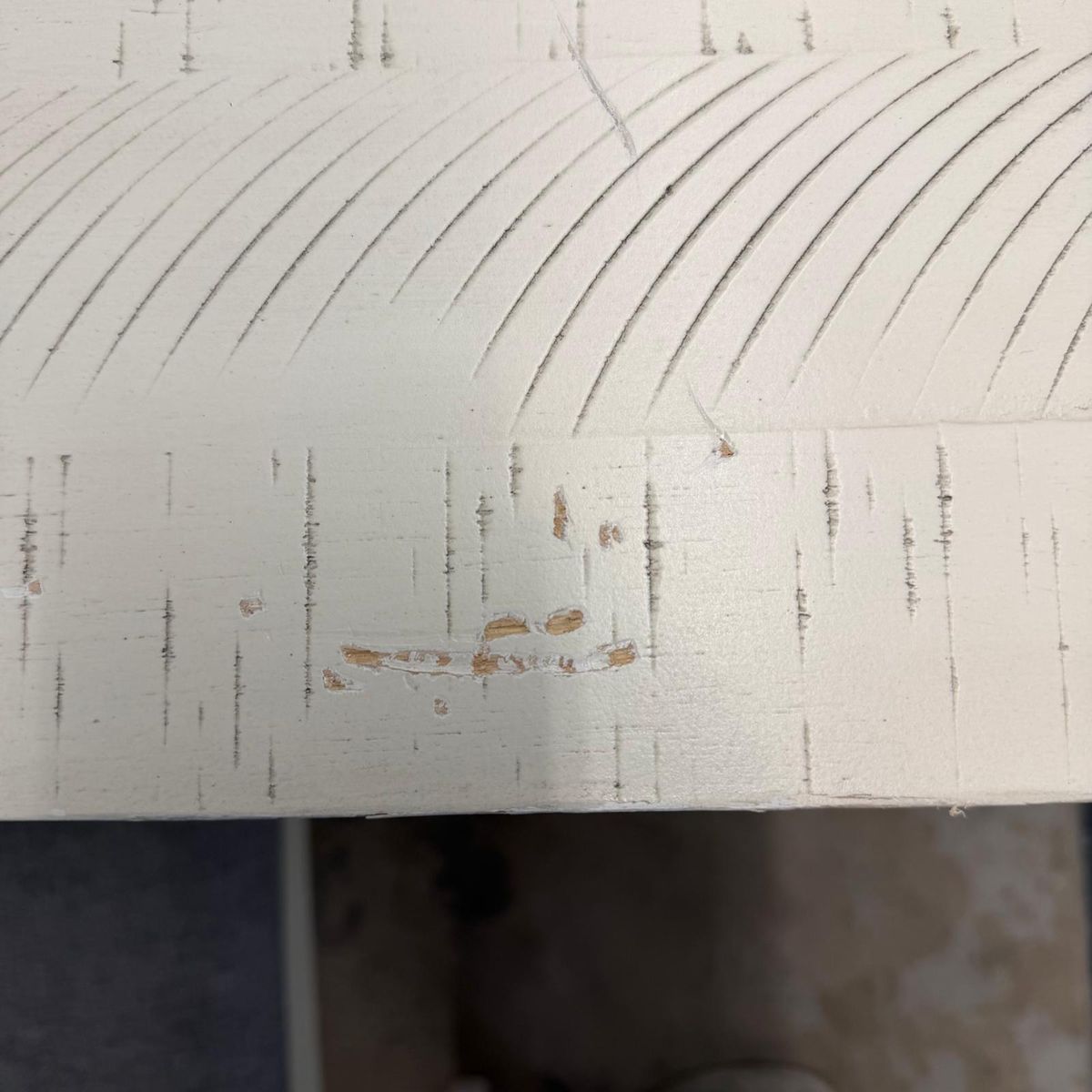 It is in great condition. Just a few scratches as pictured. Includes coffee table to store extra table leafs. Extra bench leafs are stored inside the benches.