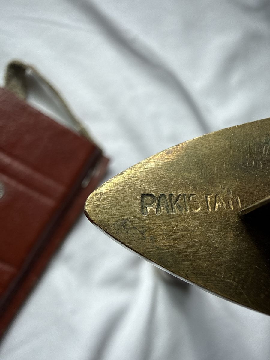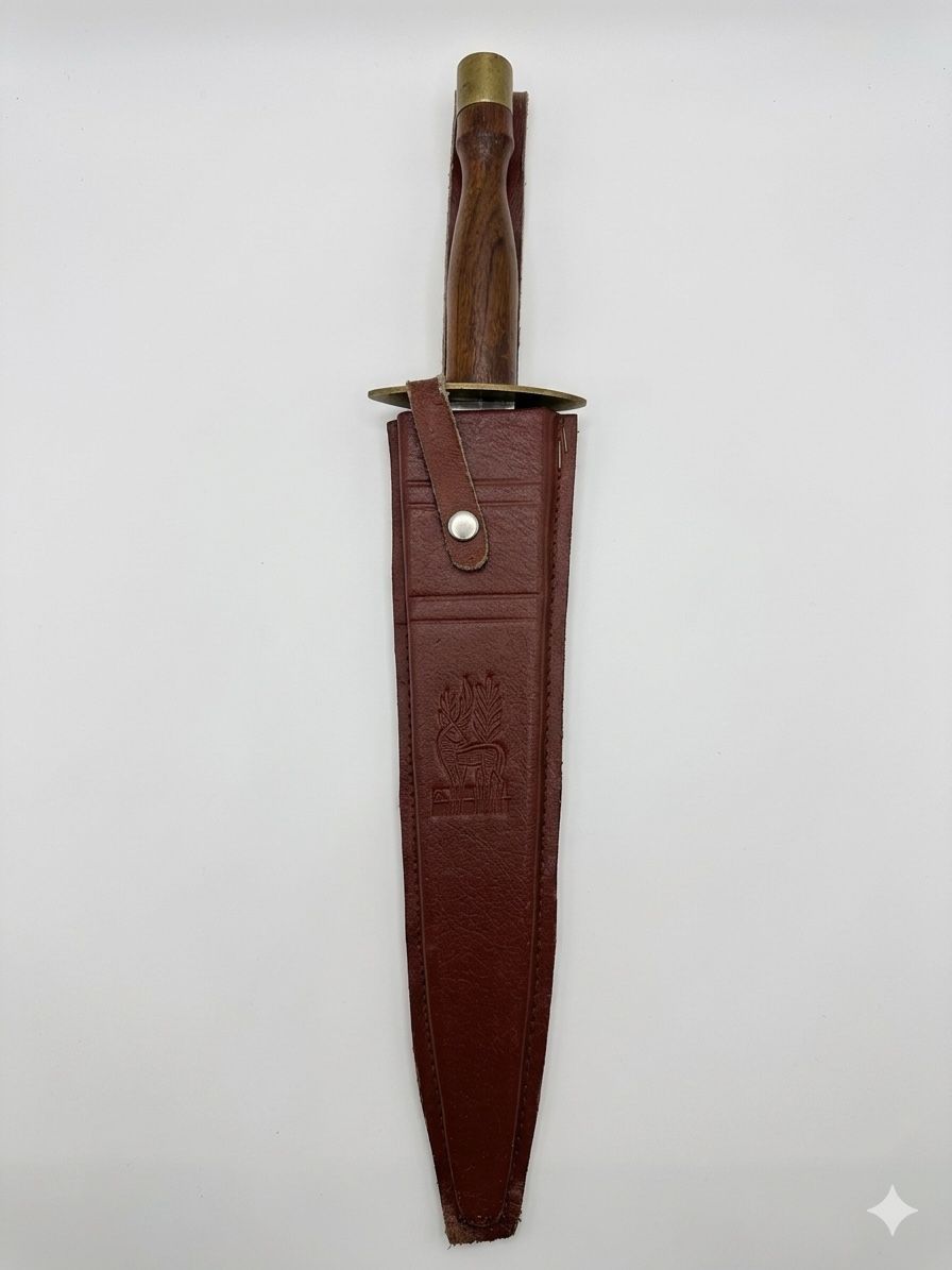 ApplePayImpressive 18” Vintage Dagger - Handcrafted in Pakistan If you’re looking for a serious statement piece for a collection or display, this is it. This vintage Pakistani fixed-blade is massive, coming in at 18 inches total with a heavy-duty 12-inch blade. It’s got a great, solid weight to it thanks to the thick hardwood handle and the wide brass pommel. It feels high-quality and "real" in the hand, not like a modern plastic replica. The Details: • The Blade: A wide, 12” steel blade (over 2” across) that’s in great shape. • The Grip: Polished wood with a wide 3.75” brass pommel for a classic look. • The Scabbard: Includes the original leather sheath with a cool embossed eagle design. • Condition: It has some typical wear and tear common for its age, which really adds to its authentic vintage character. It’s a solid, sturdy piece with no wobbles. Whether you're a knife collector or just want a unique piece for the office or den, this is a great find. Definitely a conversation starter. Price: $75 Pick up: Midvale, UT area