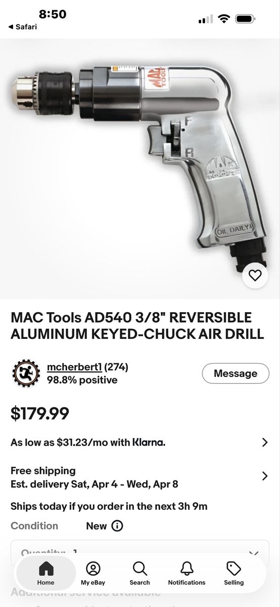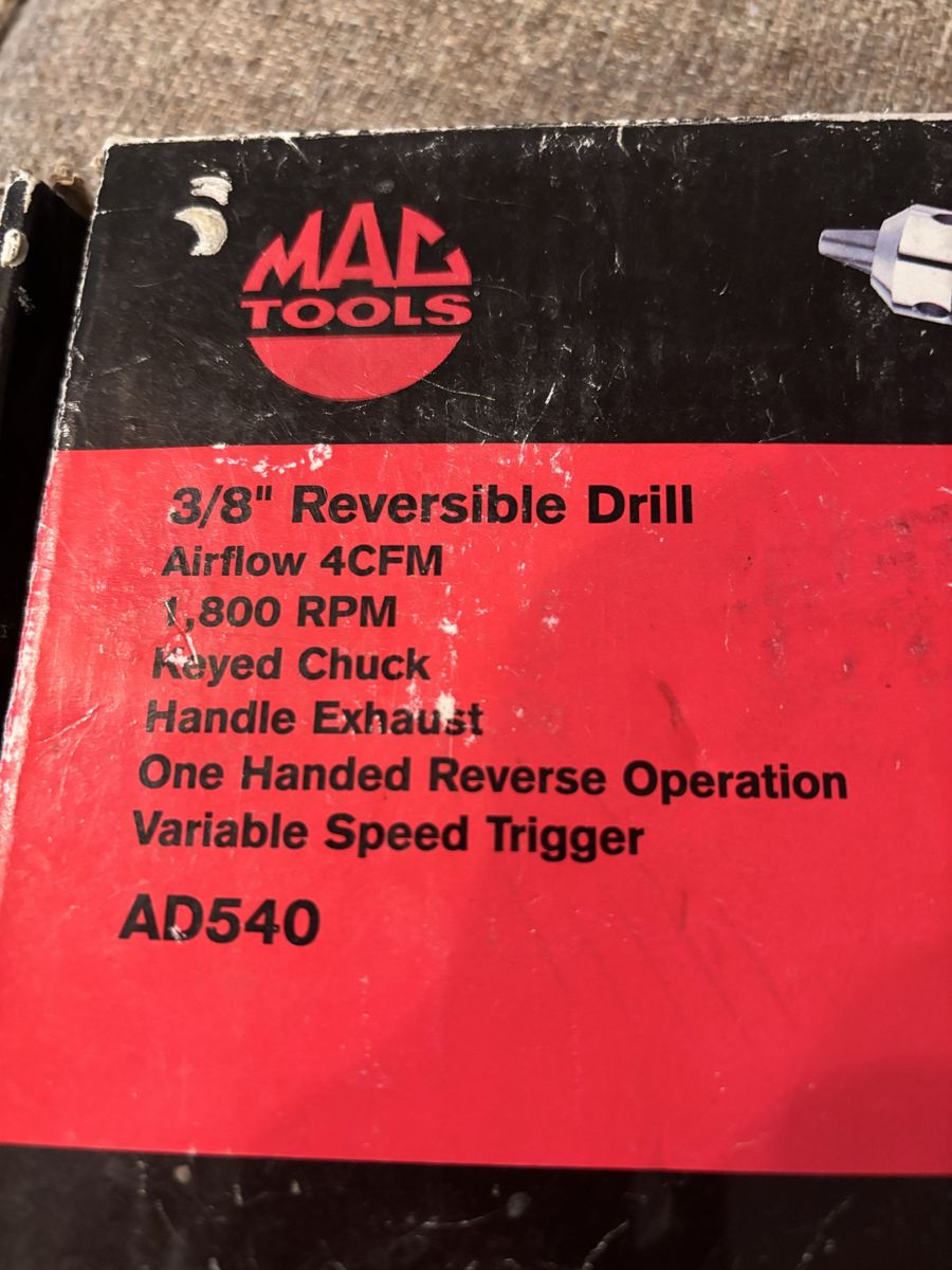 Like new Mac tools aluminum keyed chuck air drill in great condition! Looks and works like new! We all know that Mac tools makes great tools! This exact air drill is on eBay right now for 179.99 right now as shown in photos! Don’t pay retail prices, call Dustin instead at 801-205-3404, I need it gone!