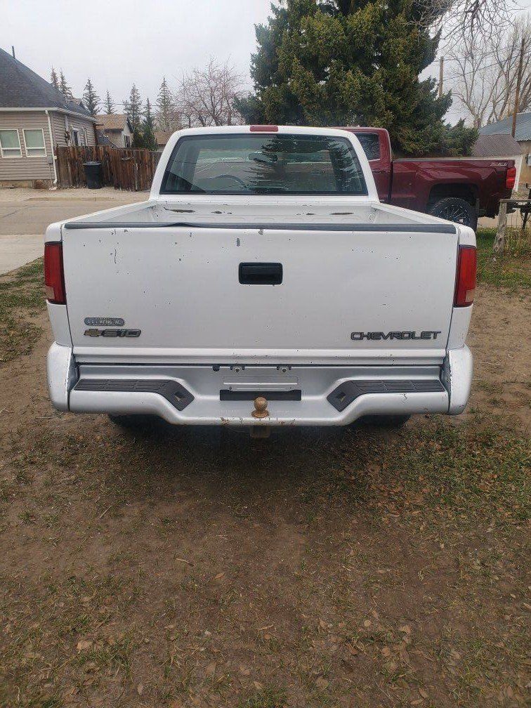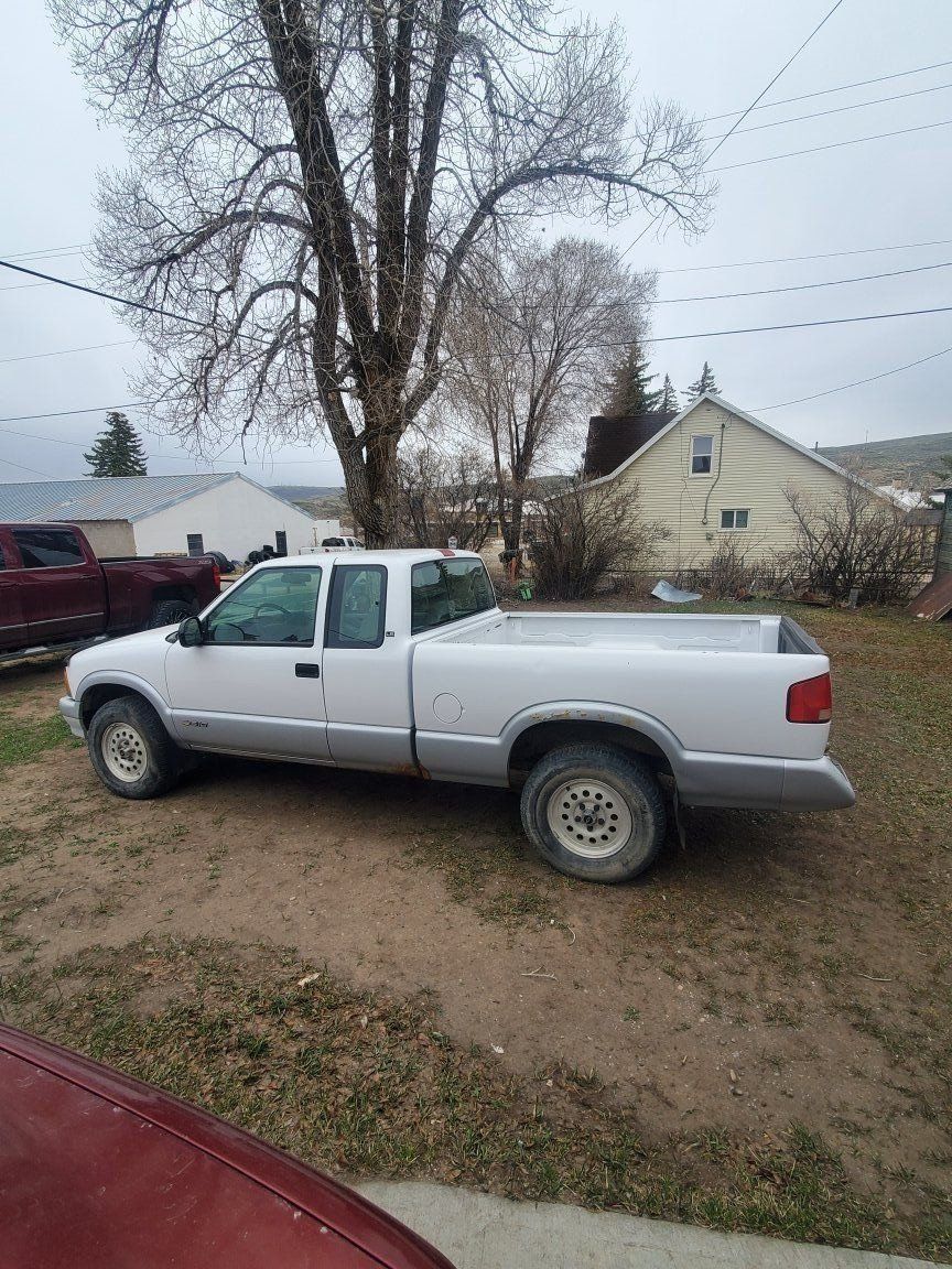 96 Chevrolet extended cab s-10 4x4 5 spd manual. 161,315 miles. Starts and runs but engine will need work or rebuild as it has a knock/ rattle in it. Clutch engages and feels good transmission shifts good. All original truck including the radio. Needs tires, windshield, exhaust fixed broken under truck somewhere and will need engine fixed. $1,500 obo or trade for car, jeep, 2wd trucks or let me know what you got.