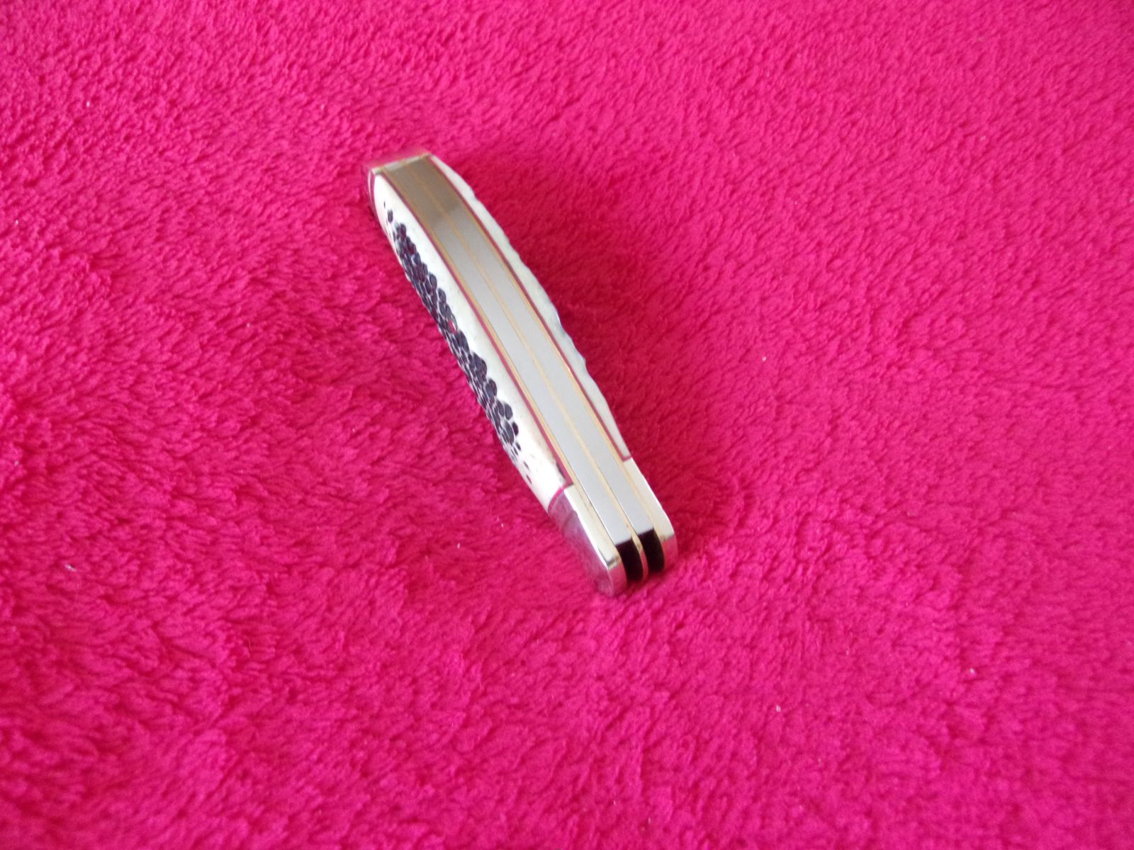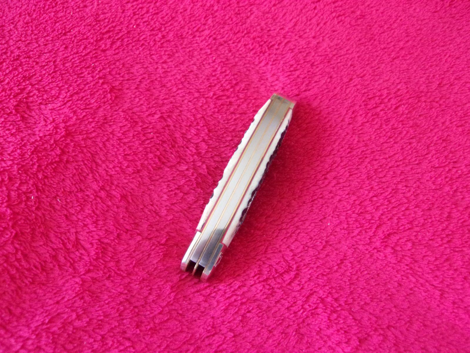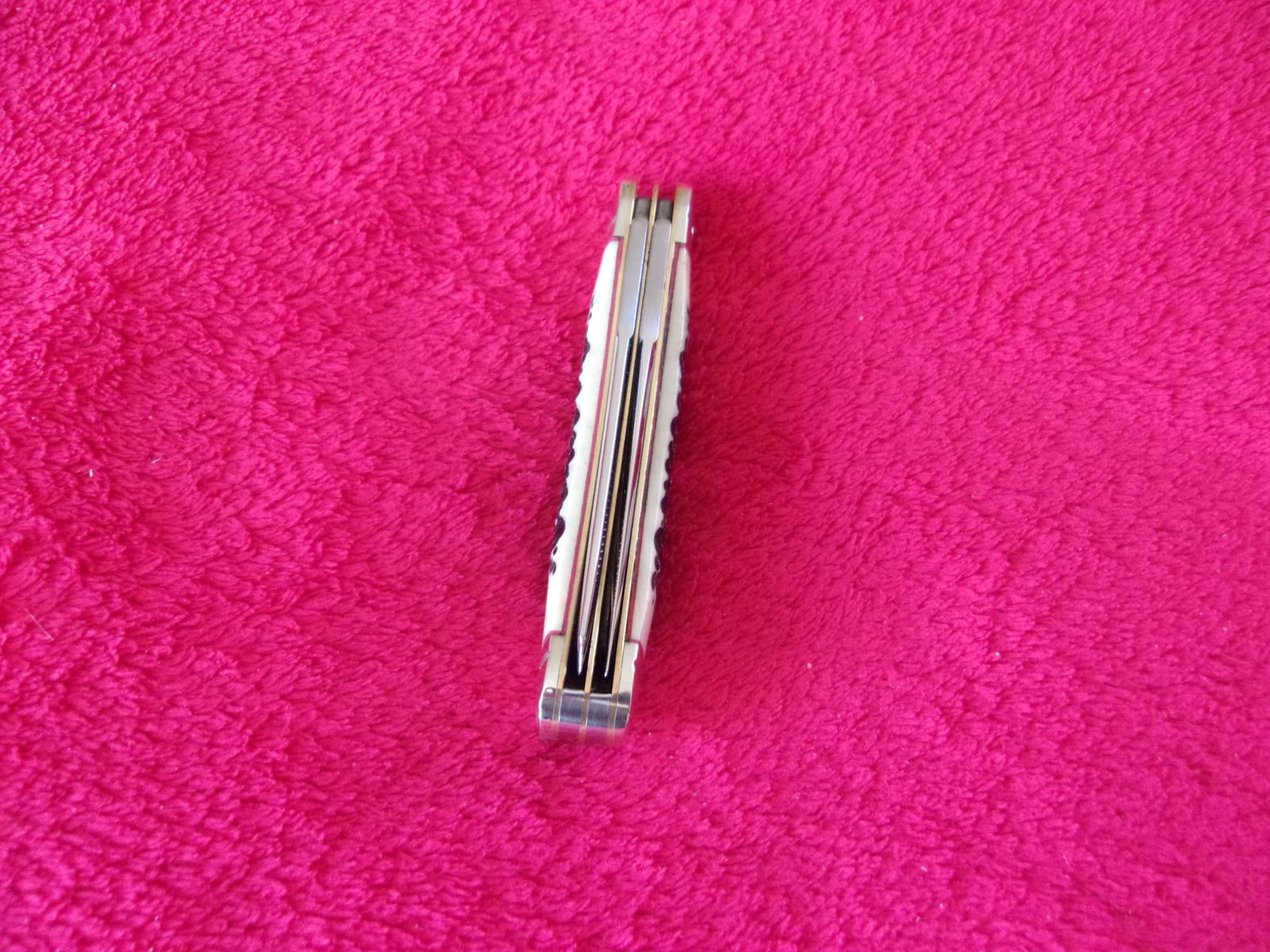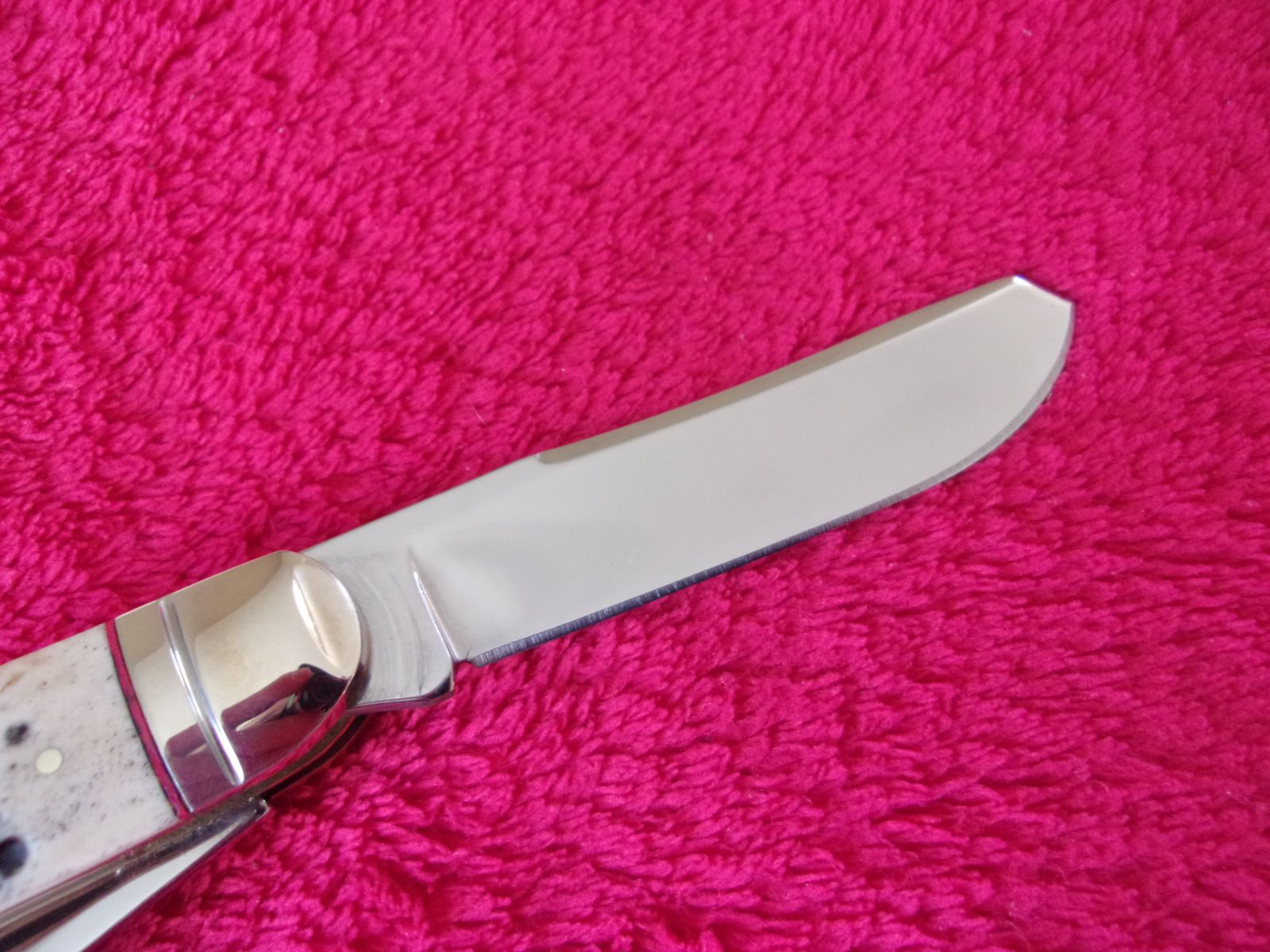 Model - RR1906. Rough Rider 1906 - Sowbelly Trapper Buckshot Bone. 3.75" closed. Stainless clip and Spey blades. Nickel silver bolster(s). Inlay shield. Buckshot bone handle. Boxed.
