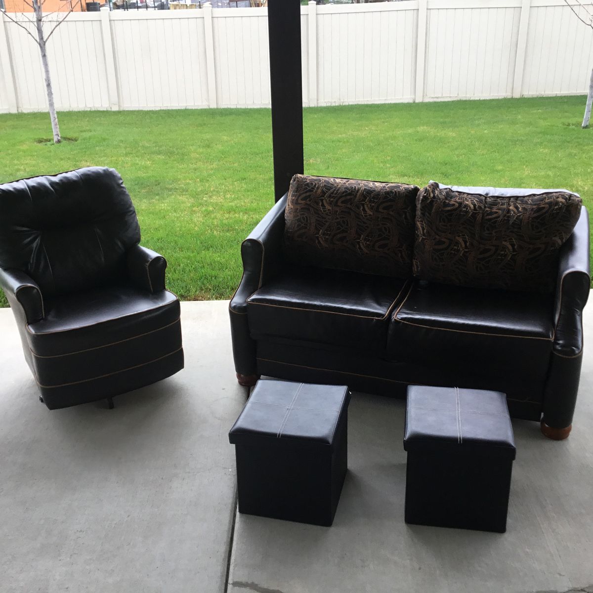 SOFA/SLEEPER JACKKNIFE COUCH, CAIR SWIVELS AND ROCKS, FOOT REST/STORAGE BOXS, TAKEN OUT OF MY 5 TH WHHEL TRAILER, GOOD CONDITION, CLEAN, NO SMOKE.
