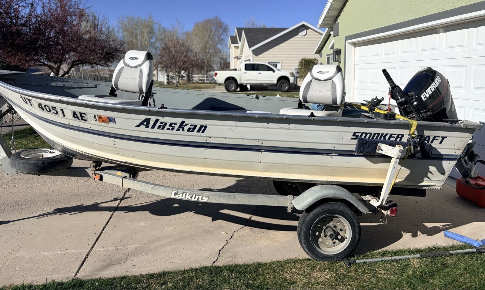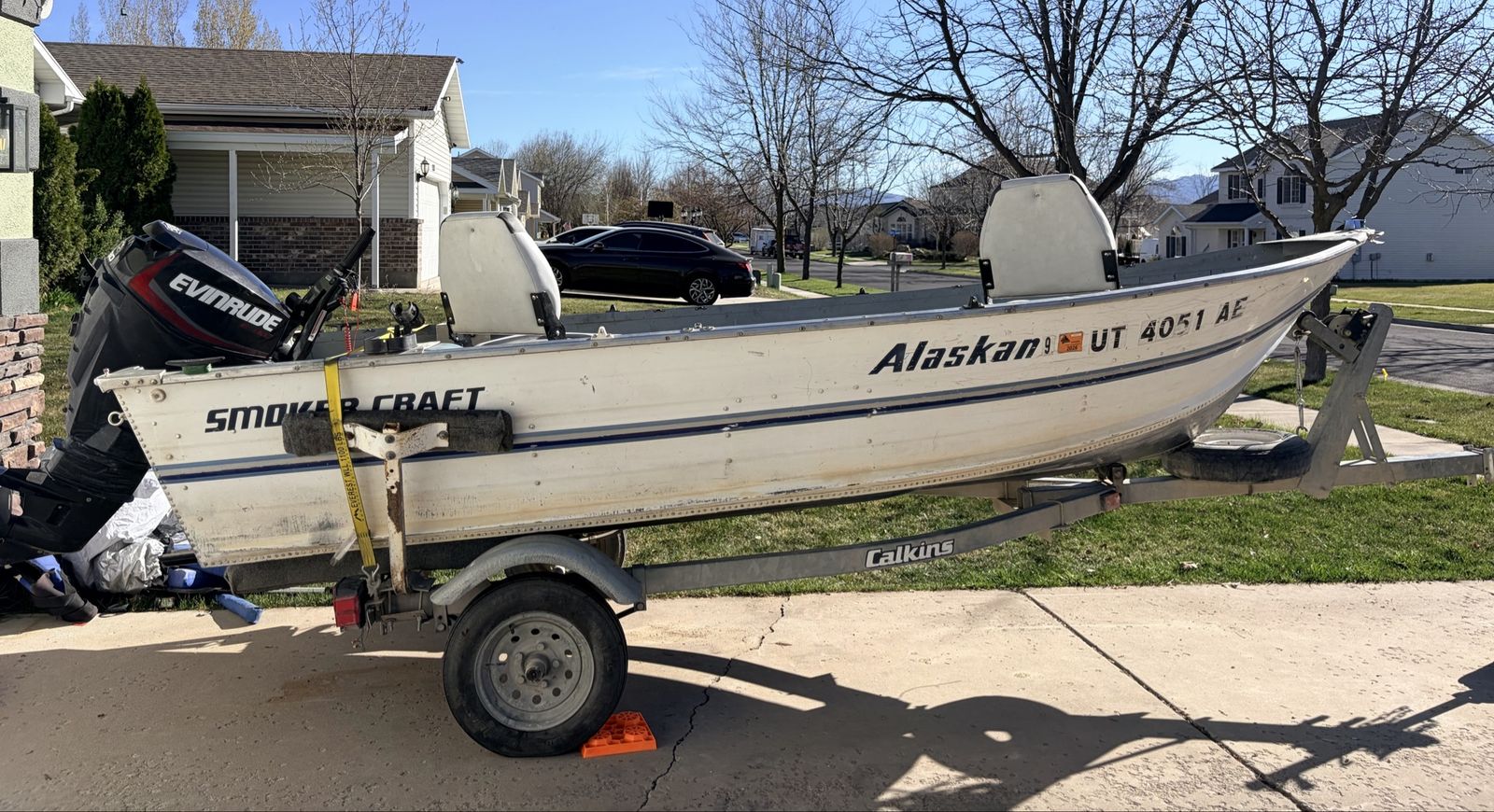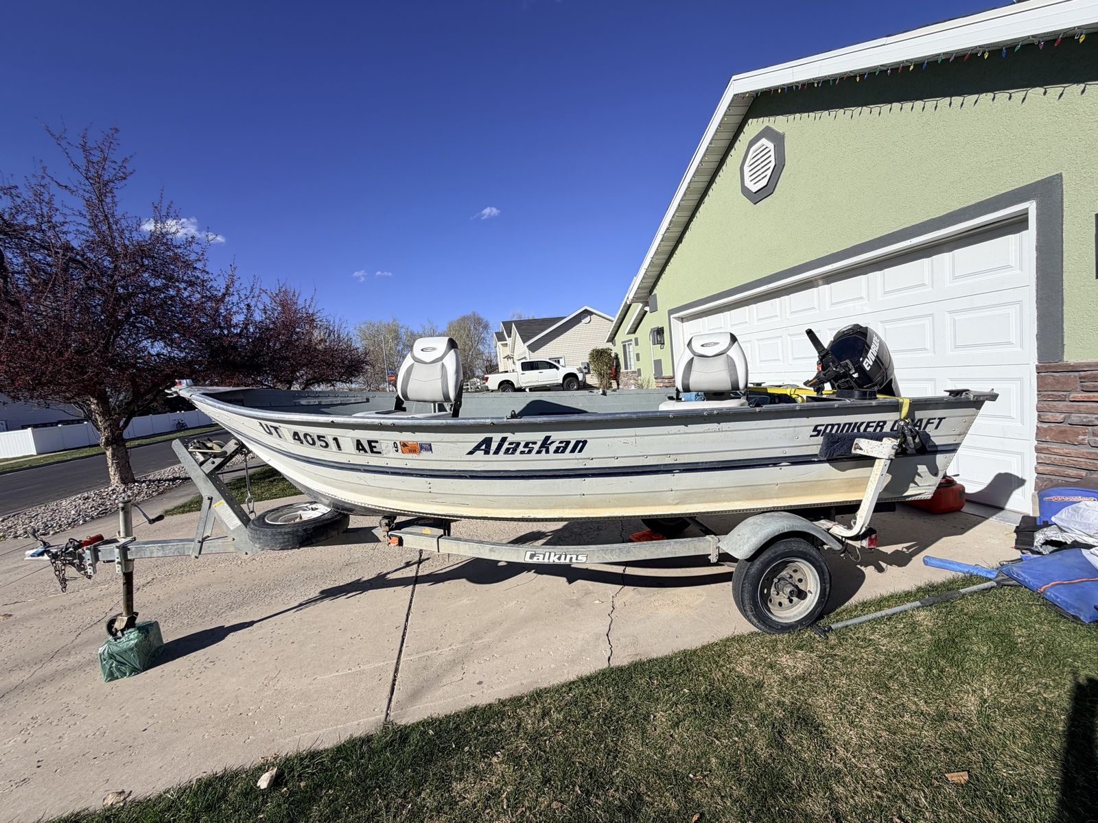 1994 ALASKAN SMOKER CRAFT - SMK20479K394 FISHING BOAT (157SF series, 14 ft.) - $4500. Aluminum fishing boat known for being wide, deep, and stable, designed for serious fishing. Features a modified-V hull, split bench seating, good storage and an open layout to maximize fishing space.