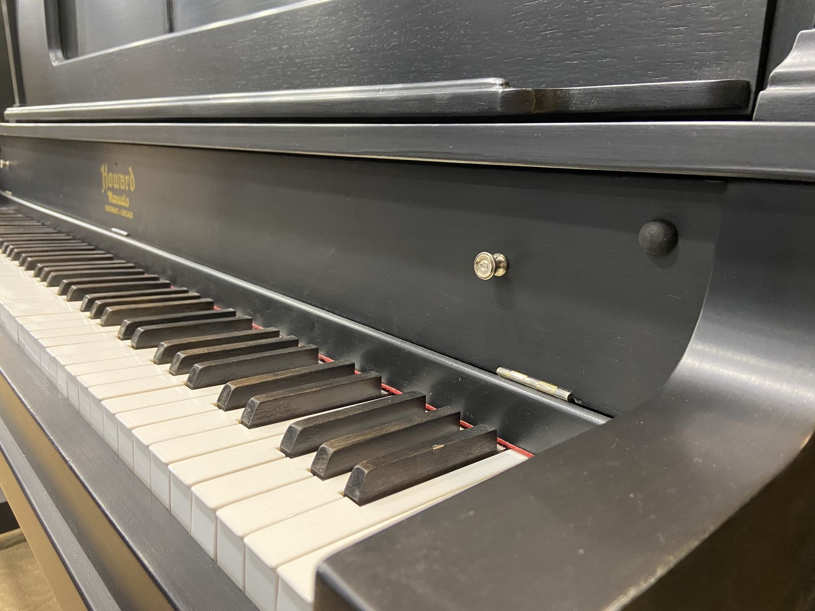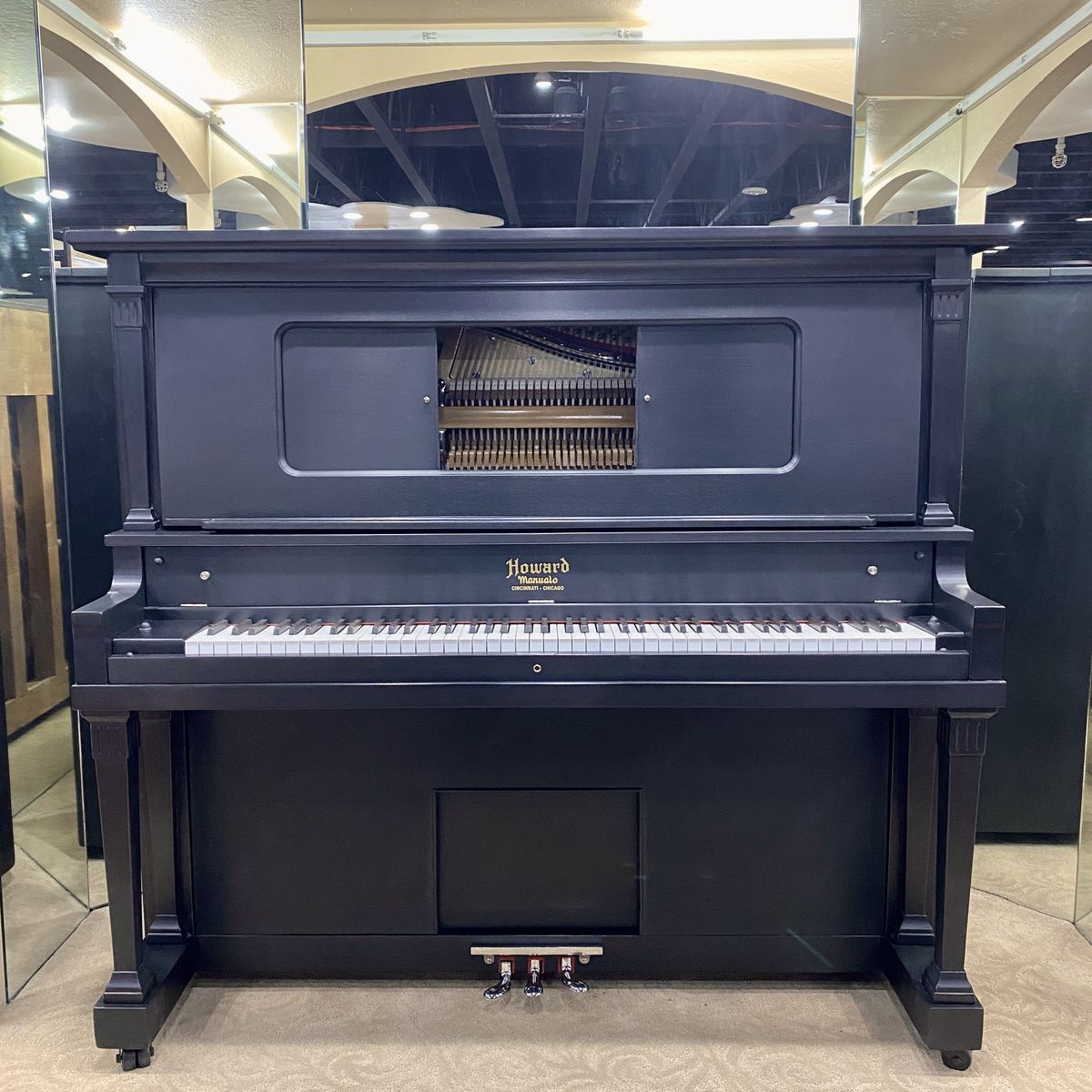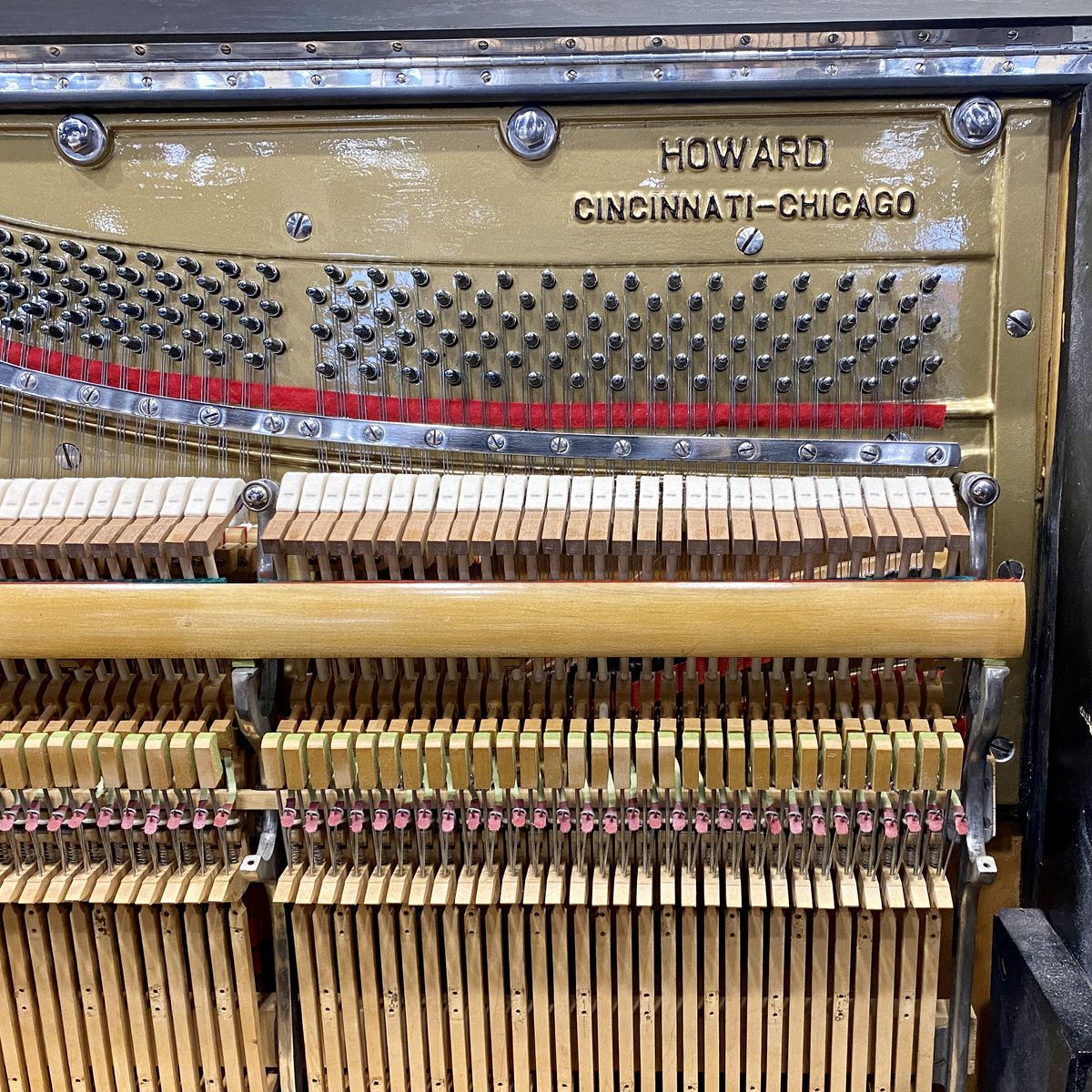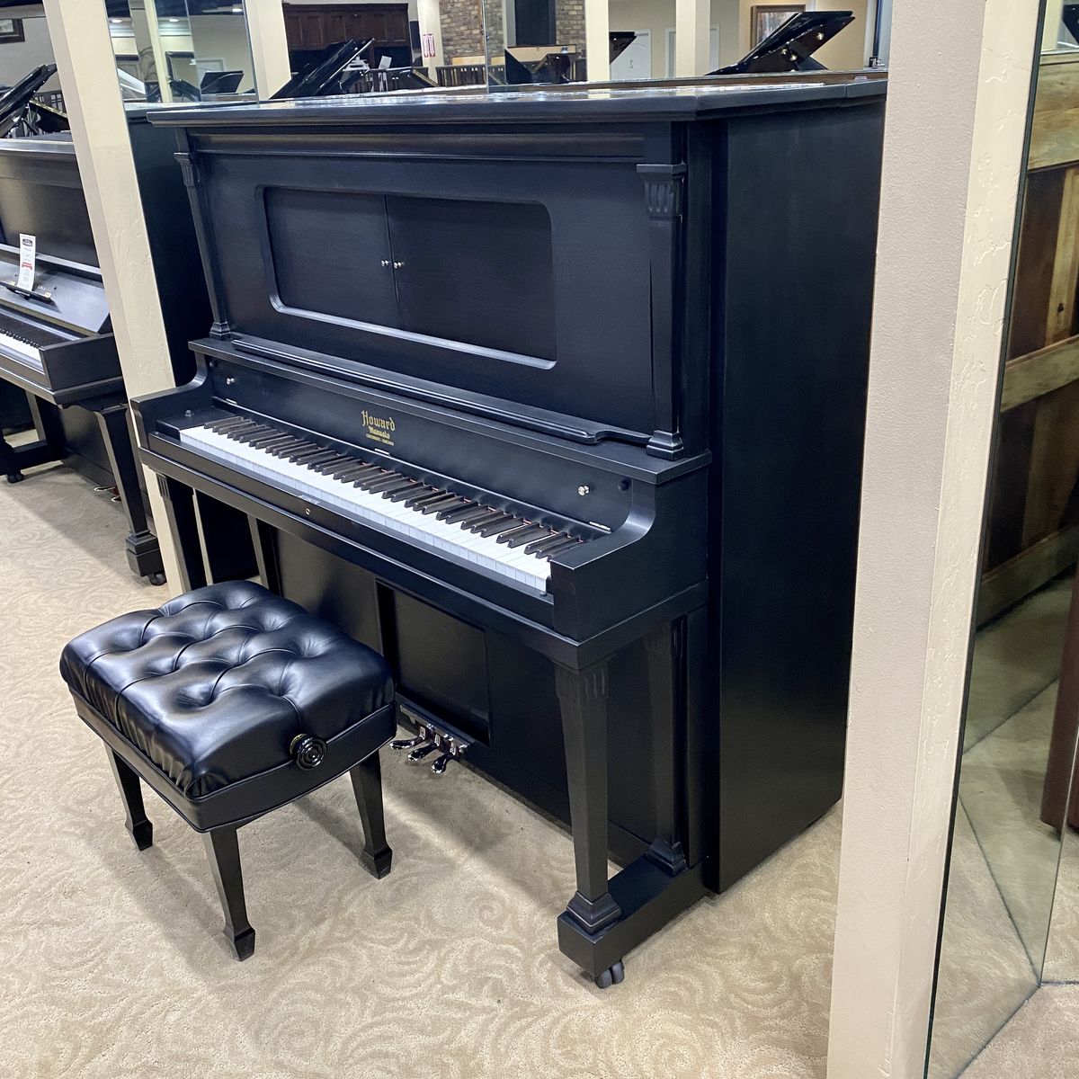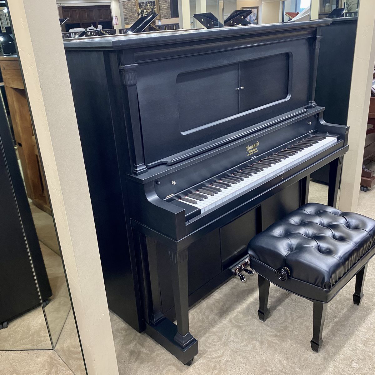 1916 Howard 56.5" Upright Piano. This fully restored 1916 Howard Upright Piano, a Baldwin brand, is now available for sale at Brigham Larson Pianos in Orem, UT. Combining historical craftsmanship with modern upgrades, this piano delivers the resonance and depth of a grand piano in an upright design. Perfect for players who appreciate vintage quality and exceptional value. Expertly rebuilt in our piano shop, this instrument features a beautiful satin black lacquer finish, new strings, dampers, hammers, and a restored soundboard for a rich, powerful tone.