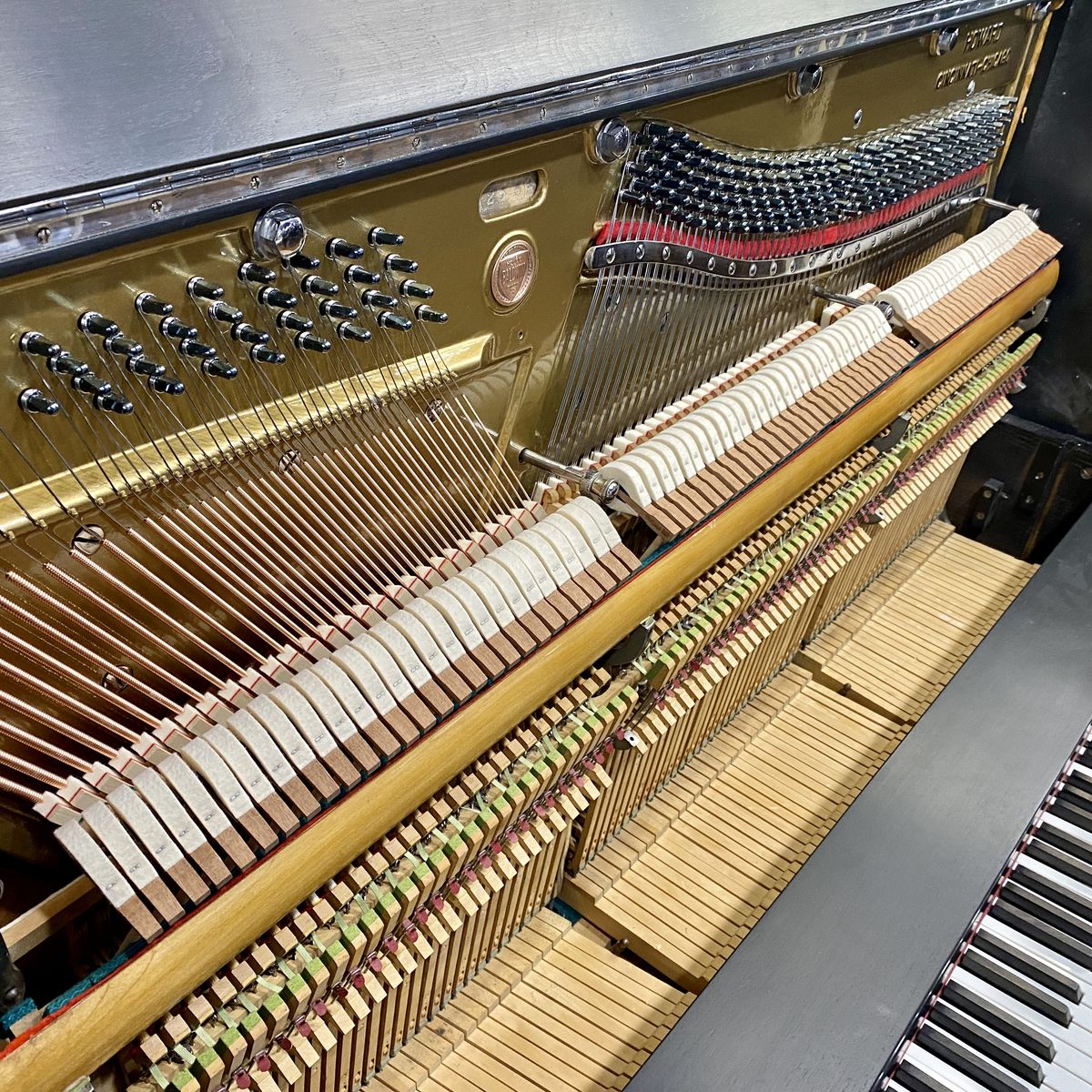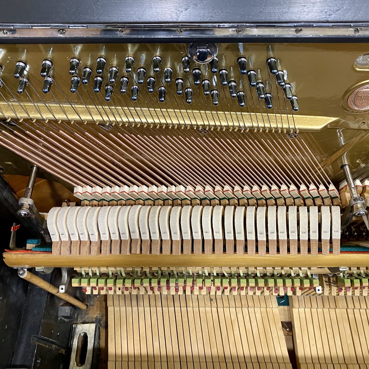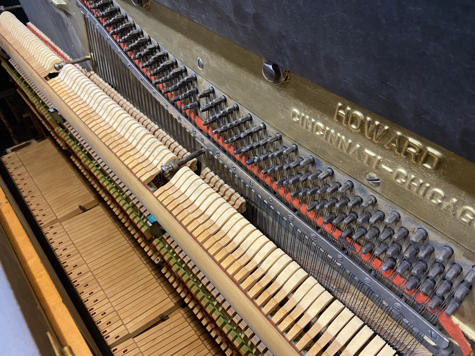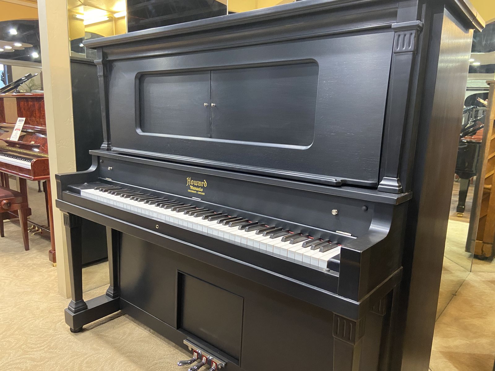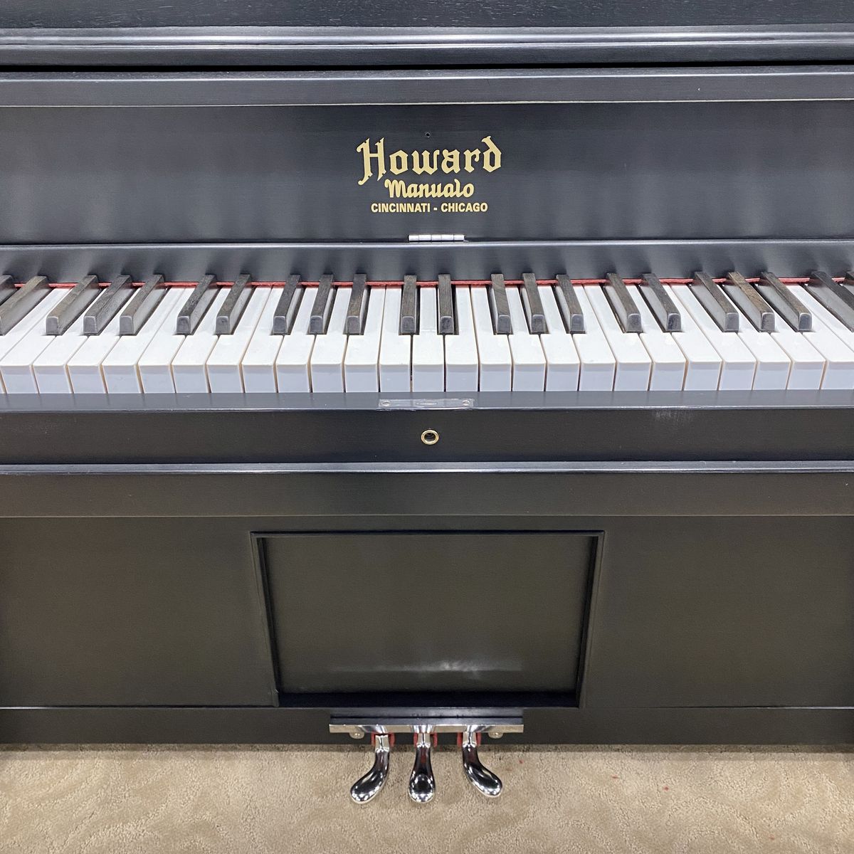 1916 Howard 56.5" Upright Piano. This fully restored 1916 Howard Upright Piano, a Baldwin brand, is now available for sale at Brigham Larson Pianos in Orem, UT. Combining historical craftsmanship with modern upgrades, this piano delivers the resonance and depth of a grand piano in an upright design. Perfect for players who appreciate vintage quality and exceptional value. Expertly rebuilt in our piano shop, this instrument features a beautiful satin black lacquer finish, new strings, dampers, hammers, and a restored soundboard for a rich, powerful tone.
