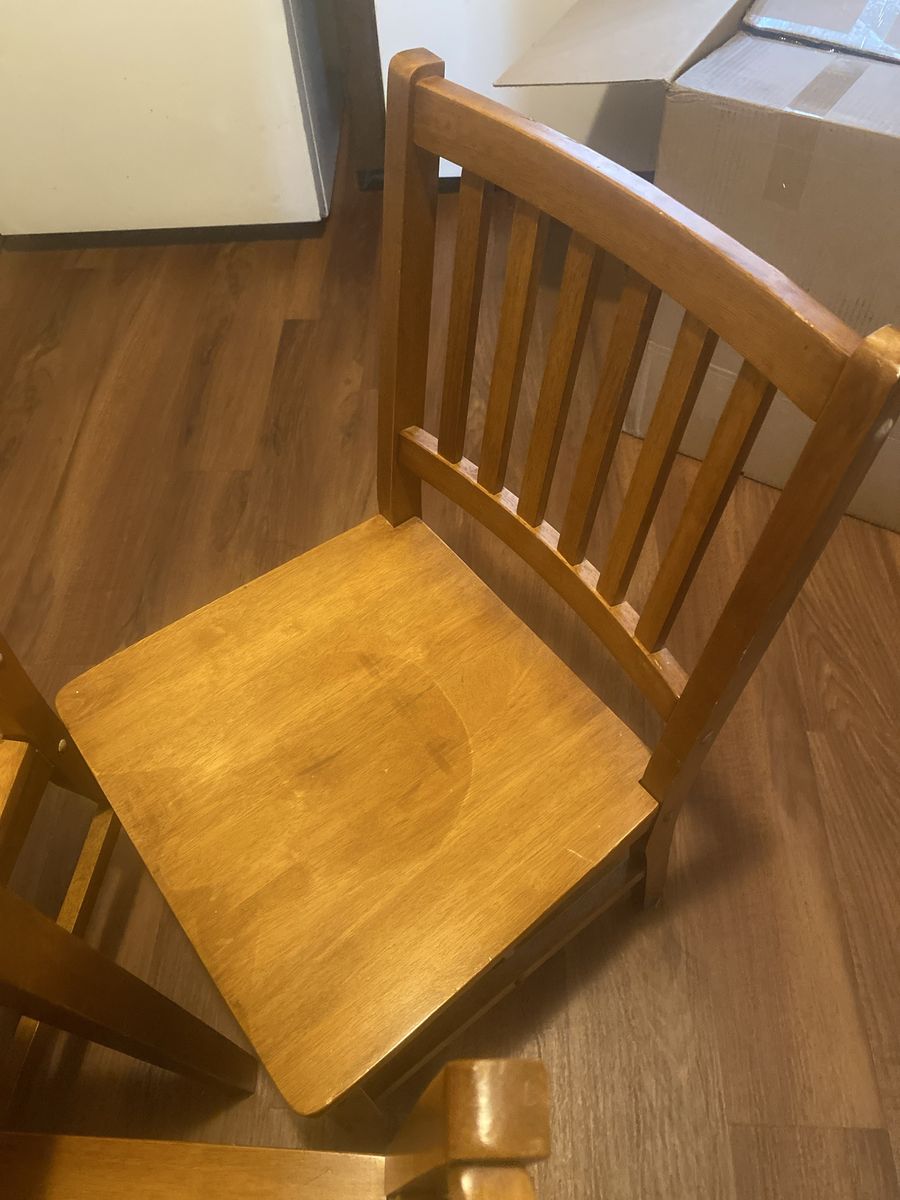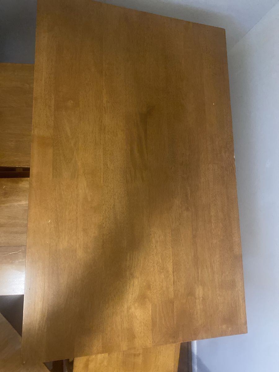 VenmoA sturdy dining set. Some chairs are a tiny bit loose. Nothing broken or gouged. Not crappy veneer with particle board underneath. You could sand this down and refinish in any color you want. Asking 200