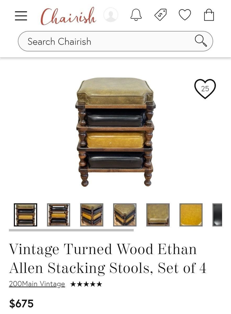 VenmoSet of 4 vintage Ethan Allen footstools. These are used but in good condition. See pictures for some wear and tear. Legs on one black stool are loose. Will consider reasonable offers. Thank you!