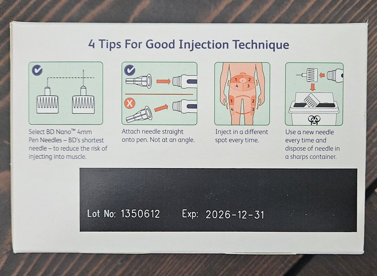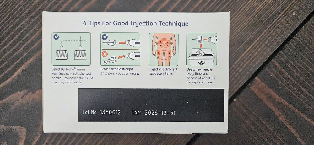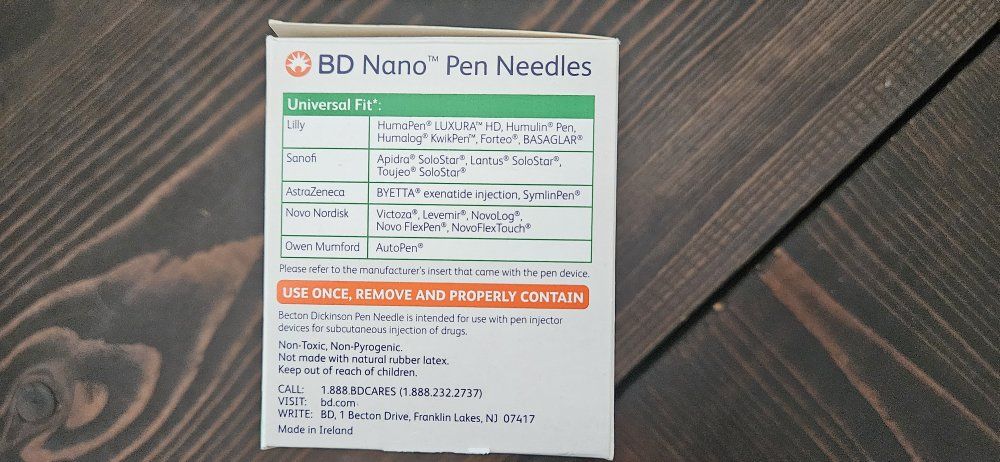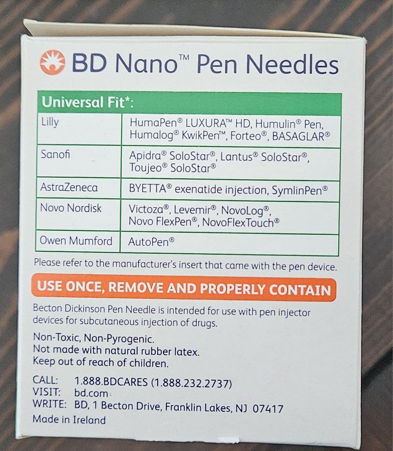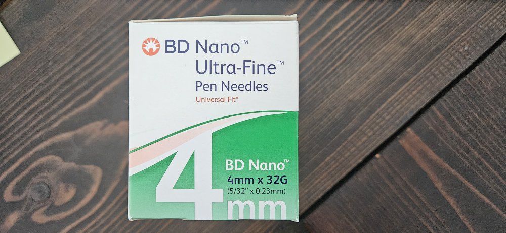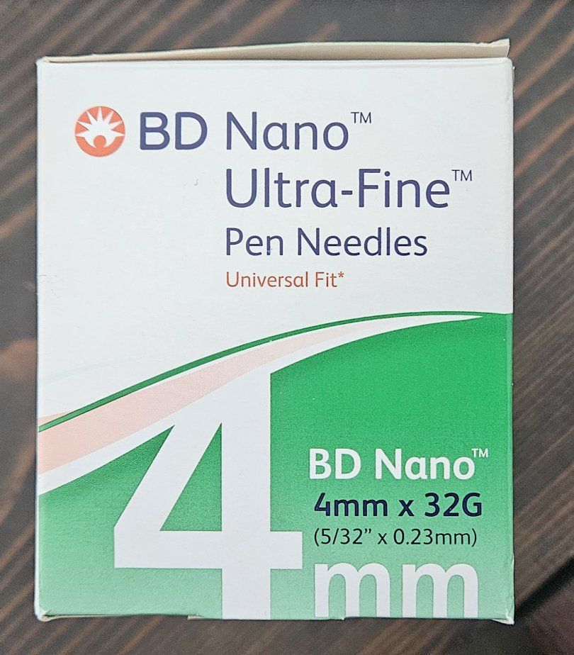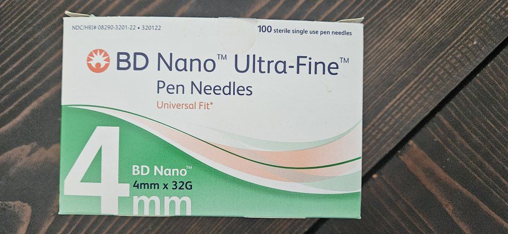 ZelleSterile single use needles, universal fit. Compatible with many name brand pen devices (see picture). 4mm x 32G.