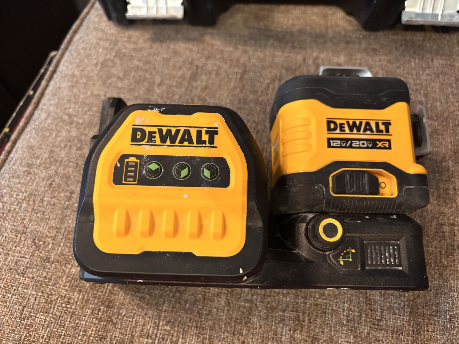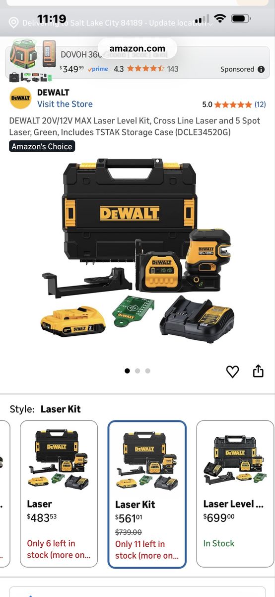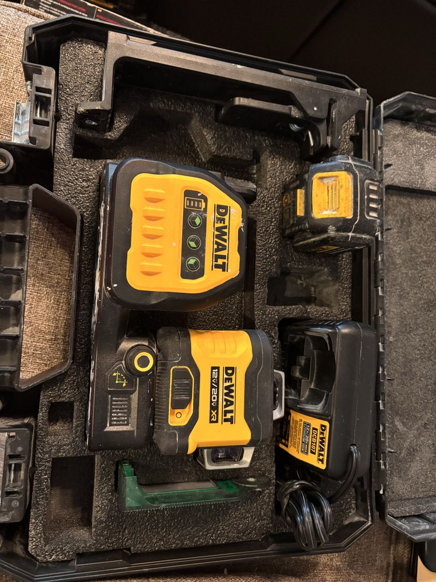 Nice Dewalt green cross line laser kit, 20 volt in case with all you see pictured! Works great! 1 battery included as shown! This exact laser kit is 561.00 at the depot right now as shown in photos! Don’t pay retail prices, call Dustin instead at 801-205-3404, I need it gone!