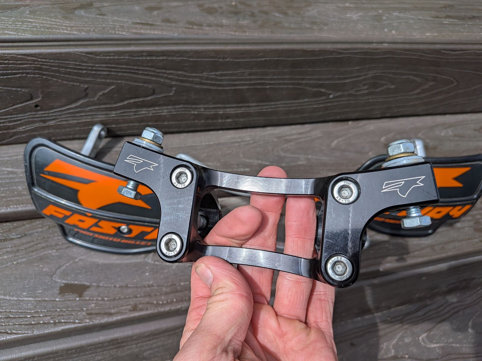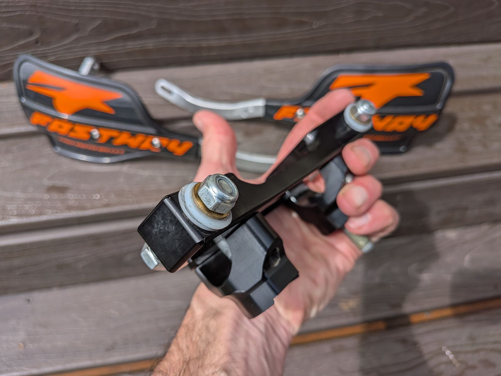 The Fastway Integrated Technology (F.I.T.) Handguard System Version 2 features a one-piece aluminum top bar clamp and integrated handguard mount tabs for a rigid and clean mounting system. Version 2 keeps cables and brake lines from interfering with your hand guards and helps prevent arm bars from twisting upon impact.