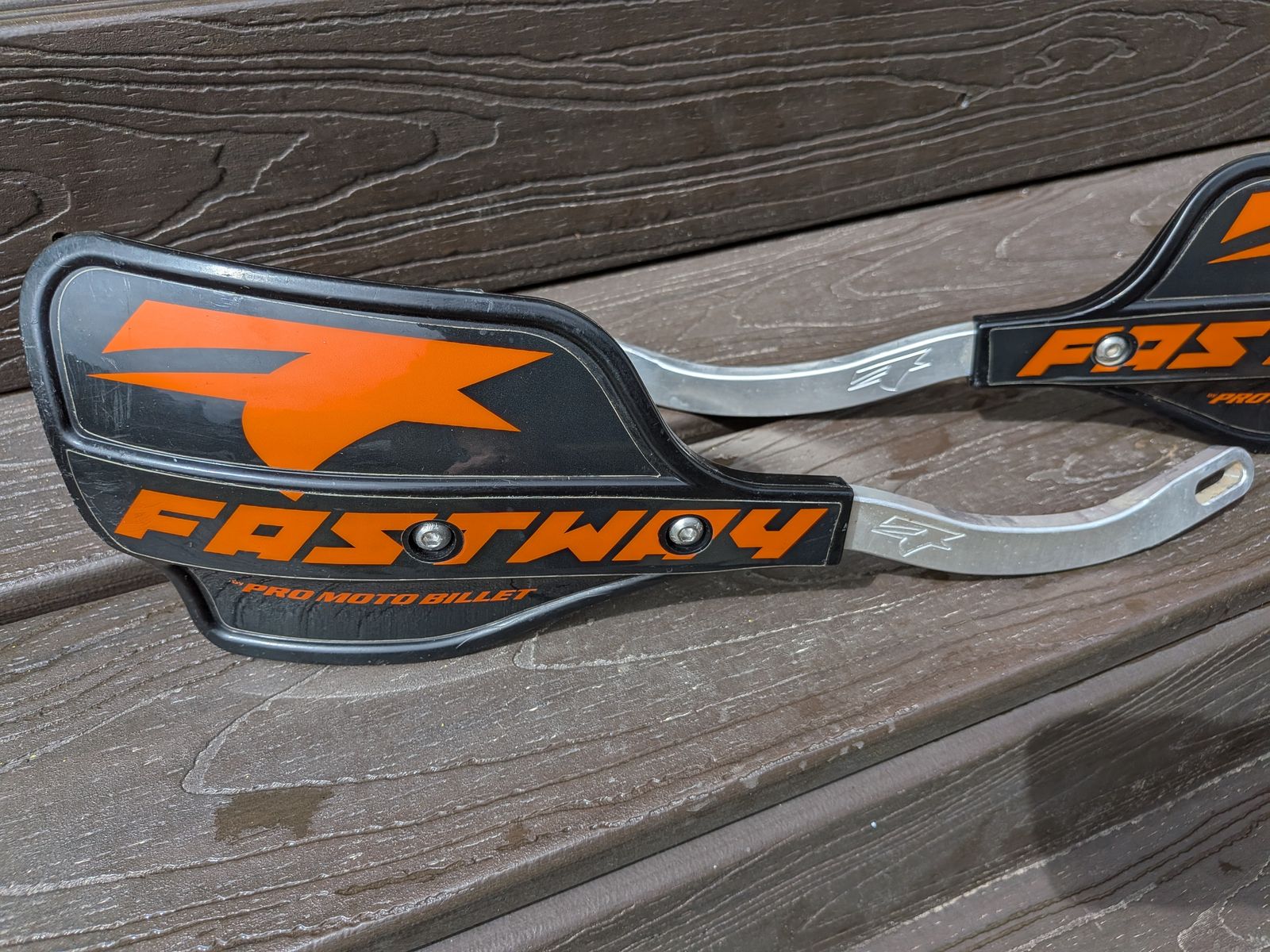 The BEST most protective handguards made! These retail for nearly $200 when new. They feature a complete handlebar mount, which is what the guards themselves then mount onto. These will not break or go all wonky when you crash., unlike Acerbis or other Bark busters.