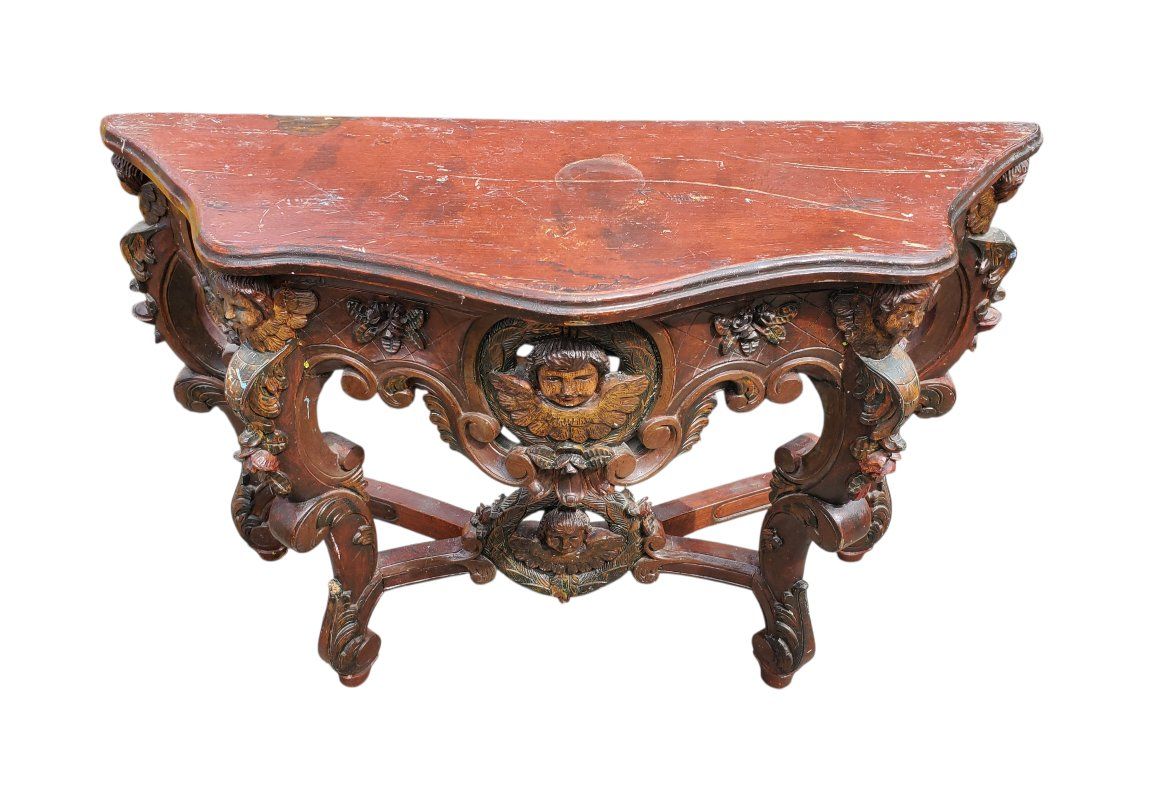 VenmoFrench Baroque Console Table | Carved with the Faces of Angels | 19th Century