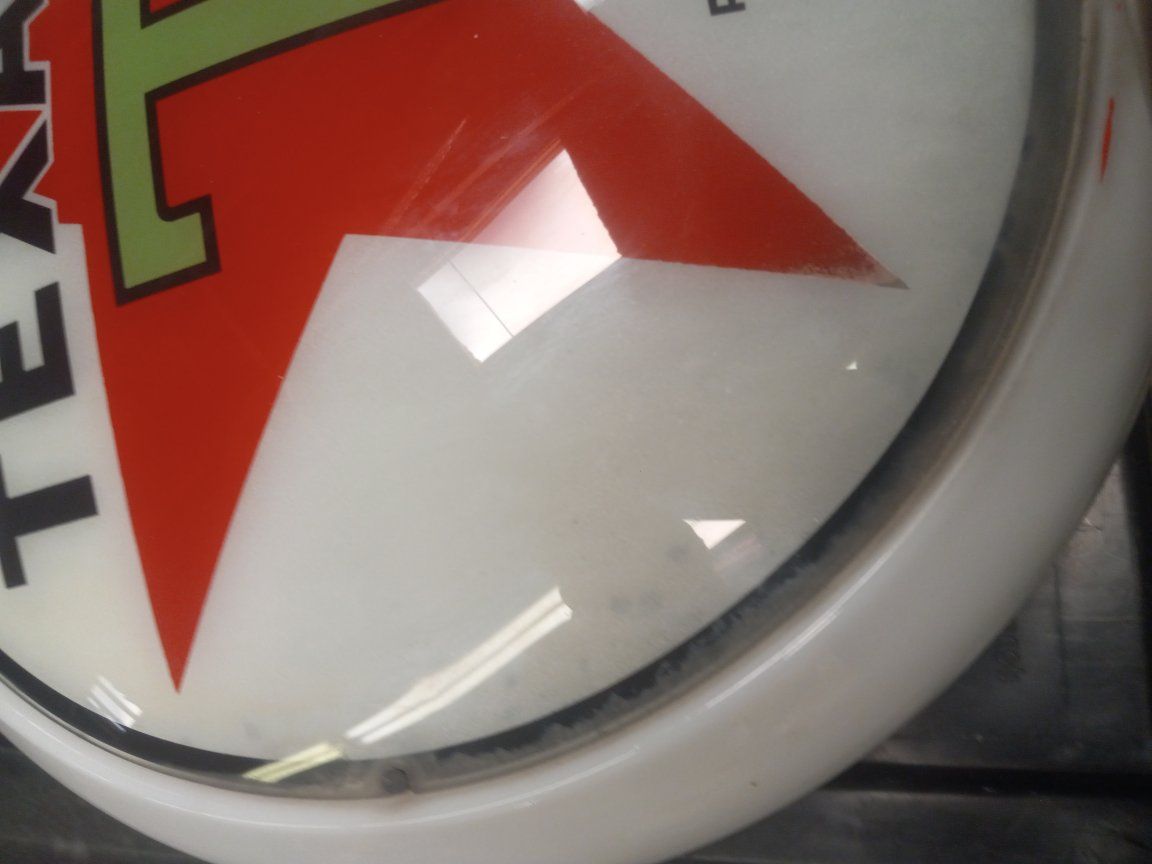 Texaco 13.5 inch one piece globe. globe has cracks but is solid. lens is good, has a little fade on the red. displays very nice. $150.00 or best offer. cash only.