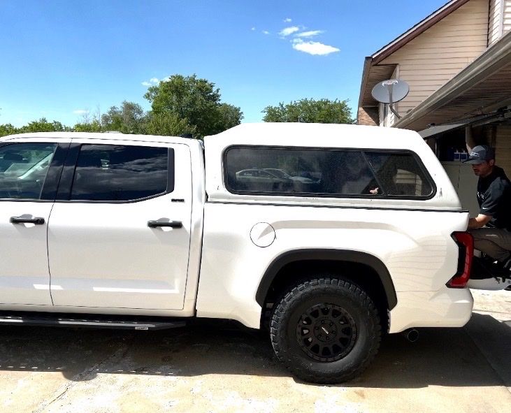 VenmoTruck shell 80x70x 21 & 1/2 (height at cab side). Fits great on my tundra as pictured. Black trim. Currently primed, prepped and ready for a new paint job. Selling as is. I just installed a different shell on my truck and no longer need this. Taking up space and need it gone. Cash/venmo only. pick up in West Valley City.