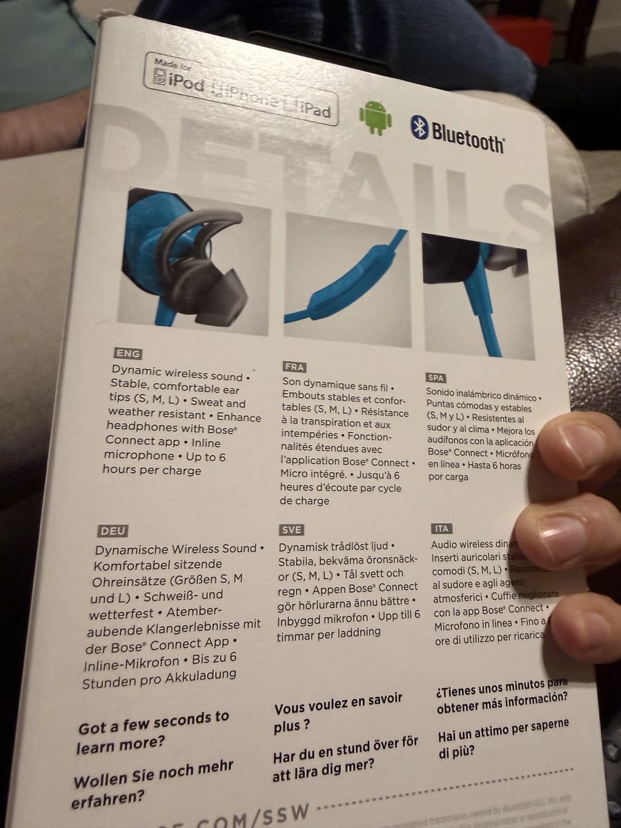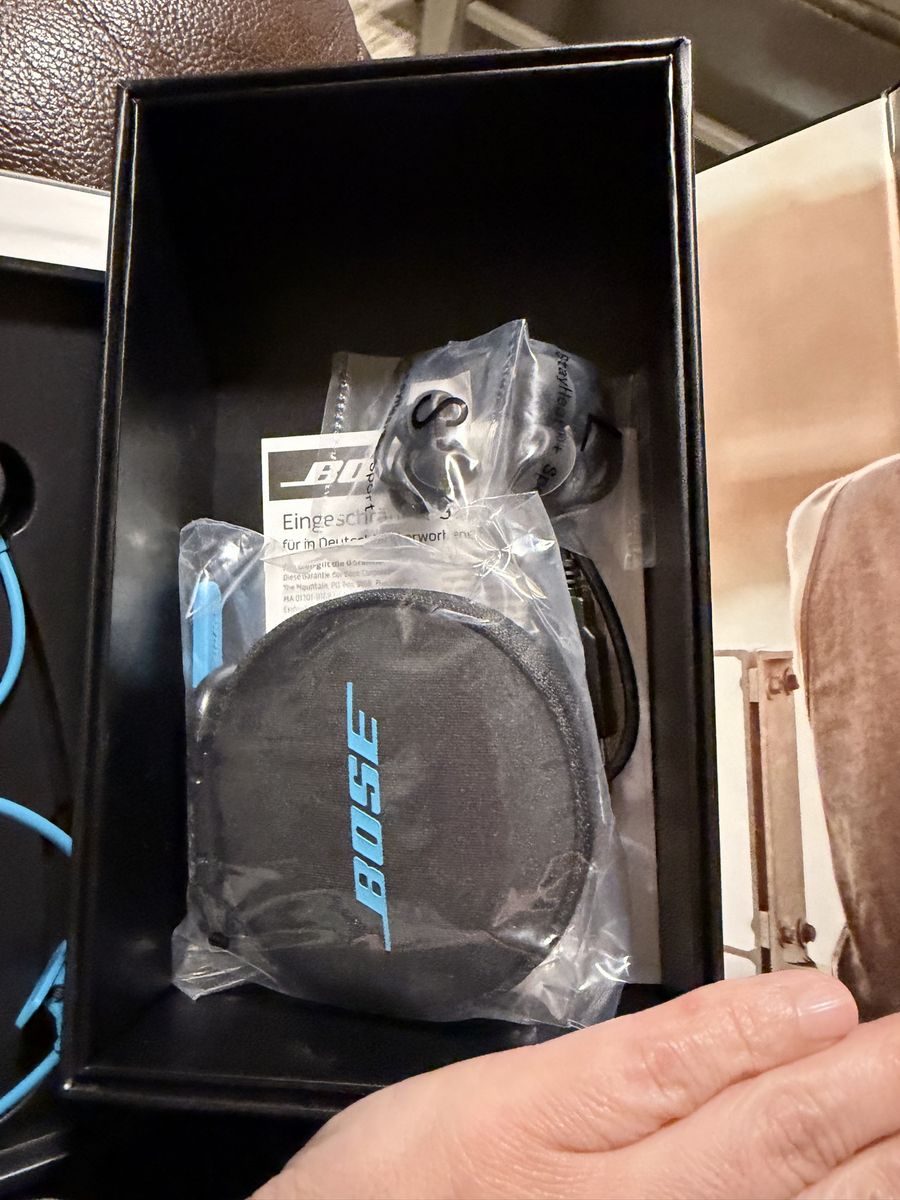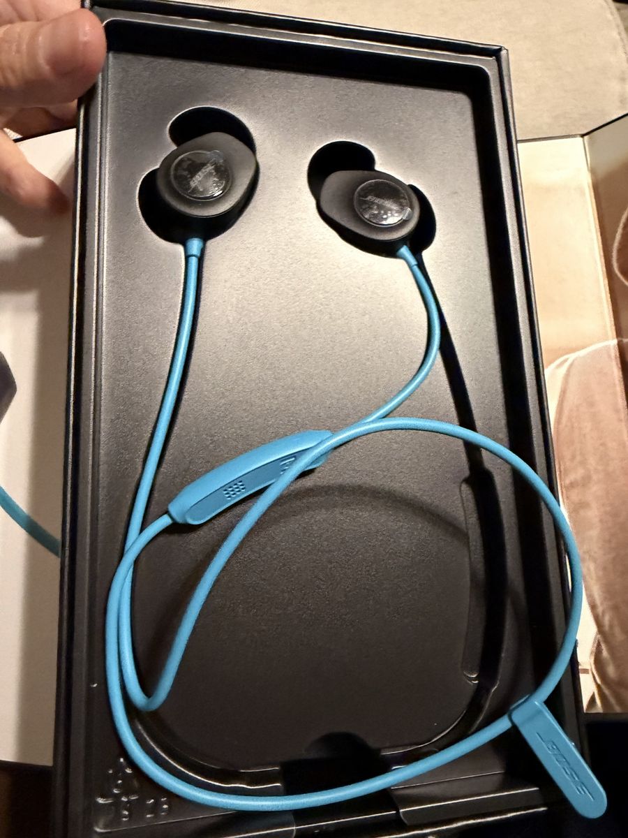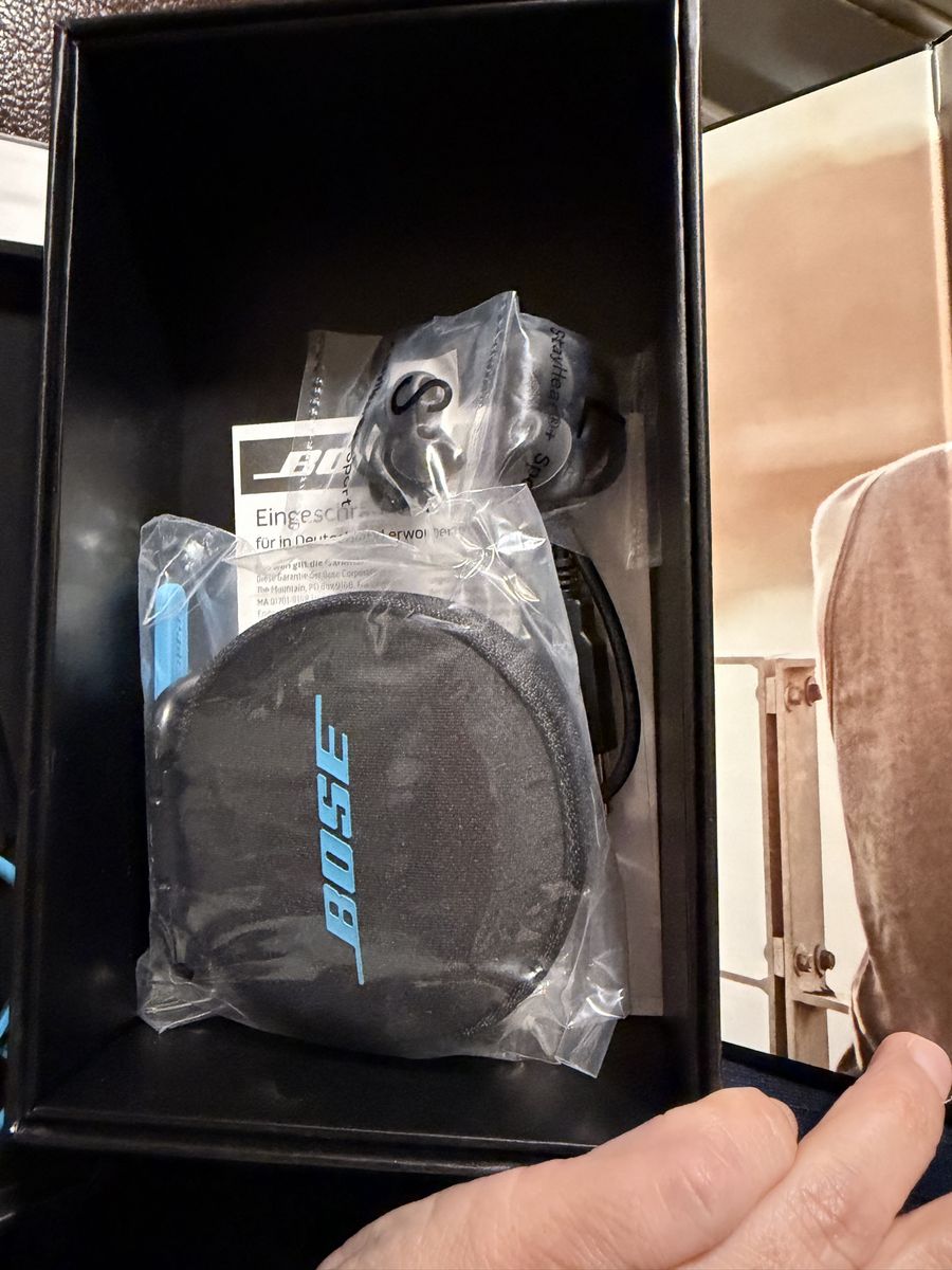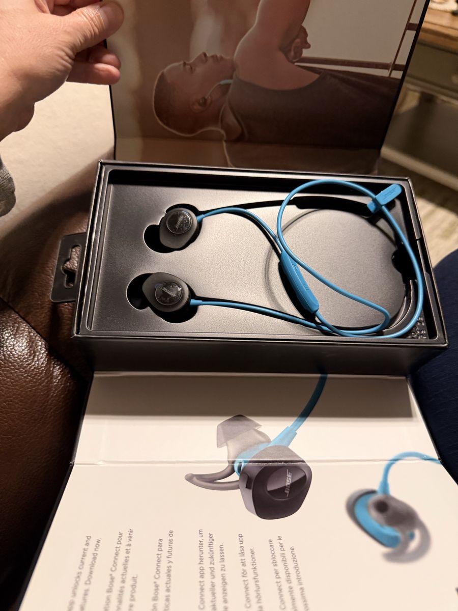 Bose SoundSport Bluetooth wireless earphones sports headphones Good quality product New unused. The vibrant Aqua Blue color adds a sporty and stylish touch. A compact carrying case is included for easy portability. New open box