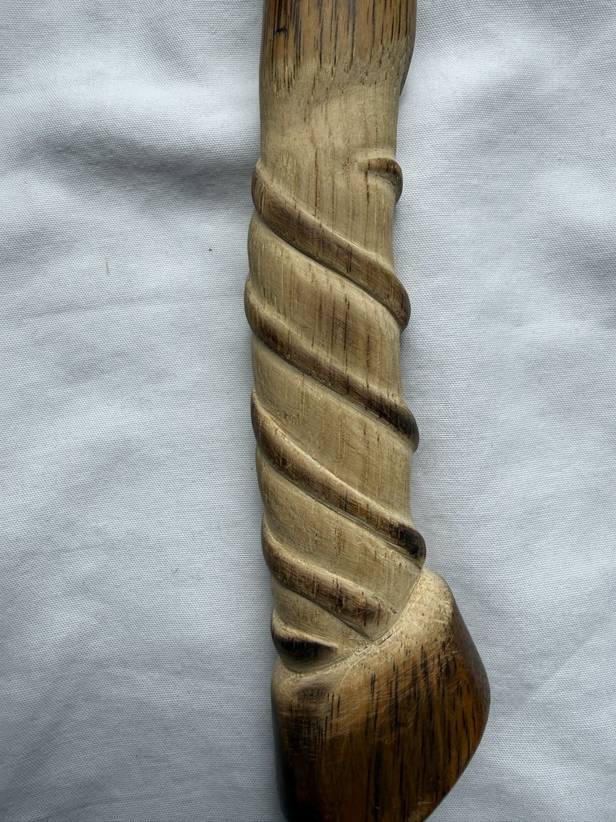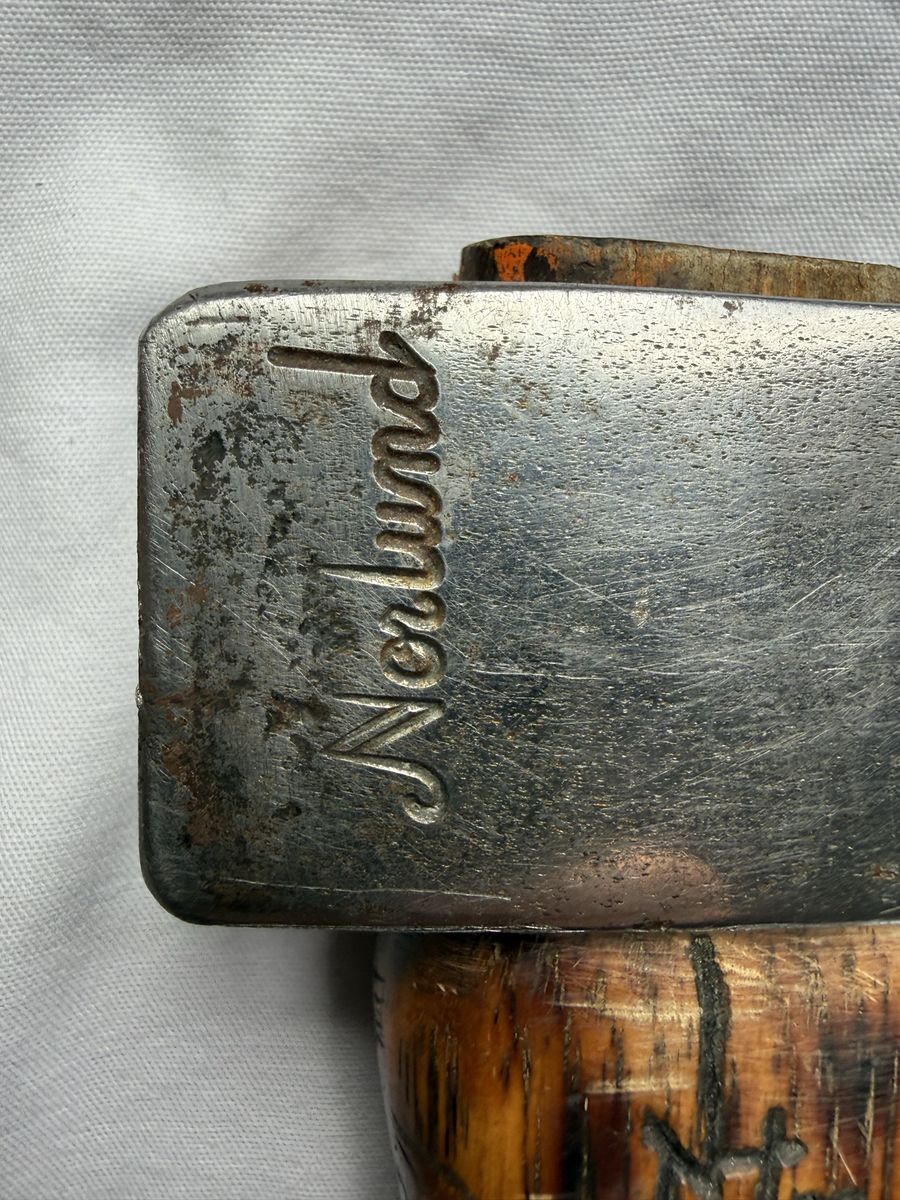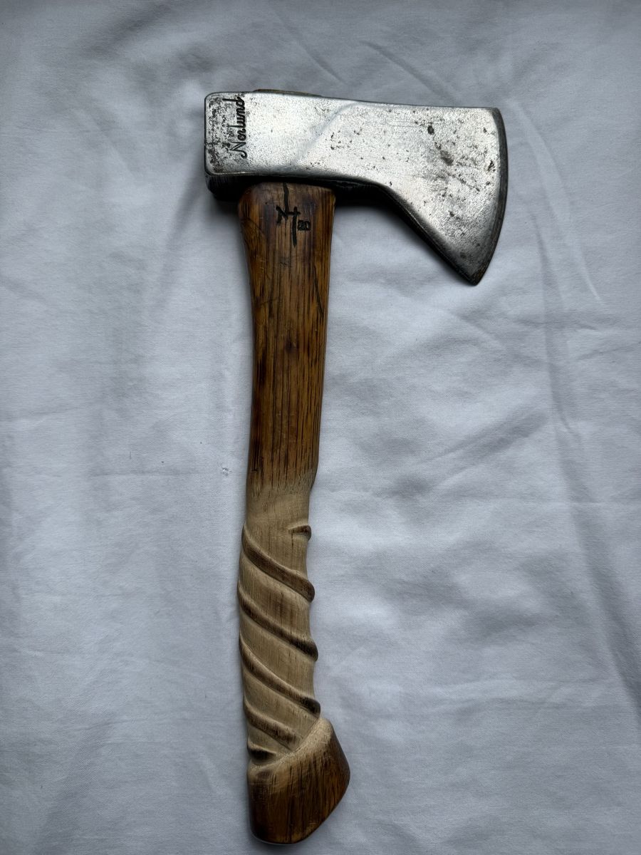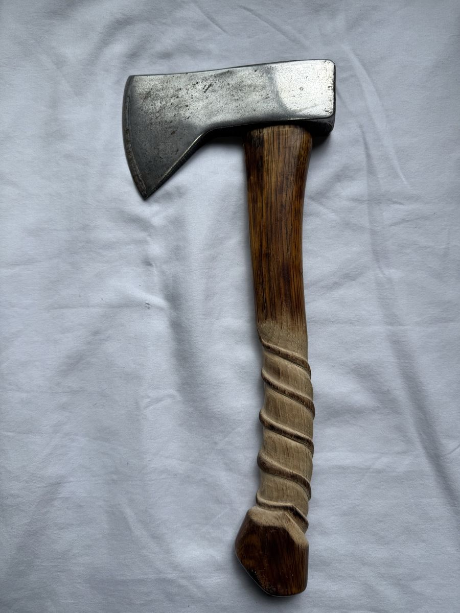 ApplePayExtremely Rare Vintage Norlund Tomahawk – Custom Spiral Handle Up for sale is an extremely rare opportunity to own a piece of American tool history. This genuine Norlund "Tomahawk" features the iconic Hudson Bay pattern and the highly sought-after original script logo. This particular piece stands out not just for its brand, but for the unique, hand-carved spiral fluting on the handle, providing a one-of-a-kind look and a superior ergonomic grip that you won't find on standard models. Features & Condition: • Original Norlund Steel: The head is in excellent vintage condition with a deep, clear stamp and a beautiful natural patina. No major pitting or mushrooming on the poll. • Custom Hand-Carved Wood: The handle features intricate spiral work and a rich grain. It is incredibly solid and adds a high-end, custom feel to this classic tool. • Minor Project: The only flaw is that the head requires a new wooden shim (wedge) at the top for a perfectly tight, "work-ready" fit. It’s a very simple, 5-minute fix for any enthusiast or collector. Norlund axes are becoming increasingly difficult to find in this condition, especially with this level of custom detail. Whether for a collection or for your next bushcraft trip, this is a standout tool. Price: $100 OBO Location: Around Midvale