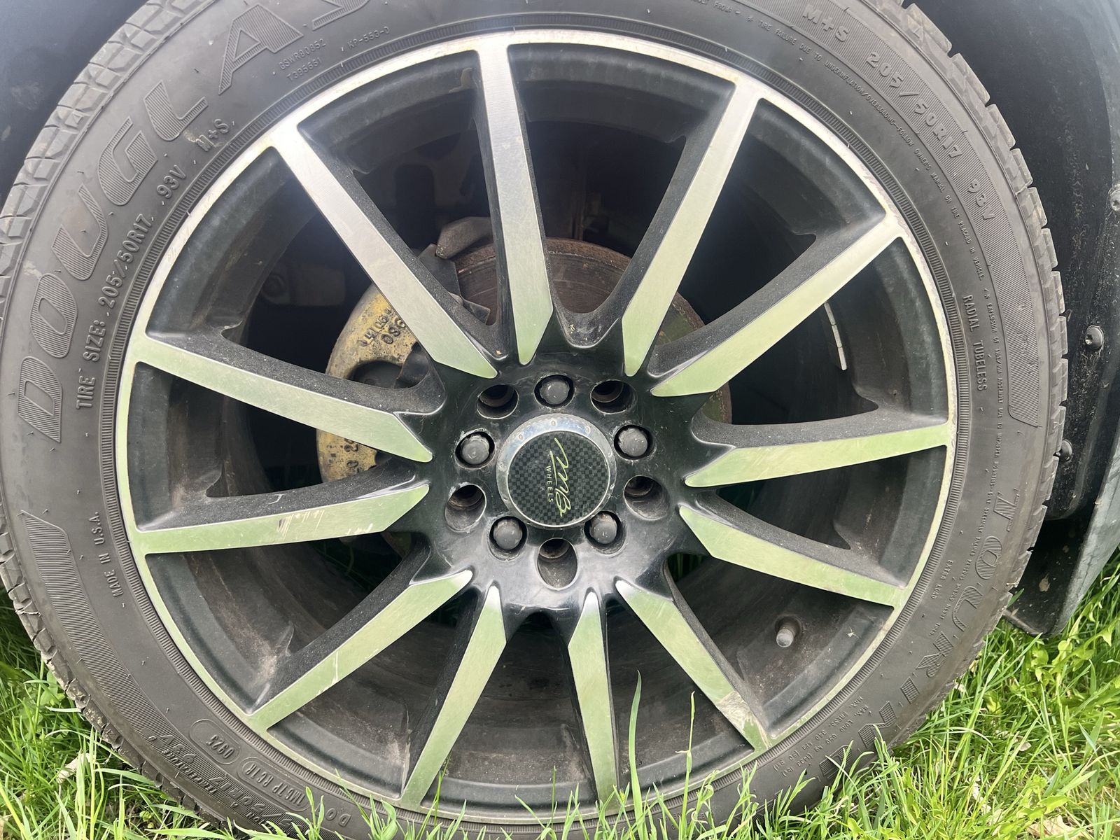 Selling a nice set of aluminum rims. "MB Wheels 17" - Dual Drill 5x100 / 5x114.3 - Fits Honda, Toyota, Subaru, Chevy" Came off a 2004 Chevy cavalier. Will come with free tires on it that have okay tread and hold air but have some dry rot.