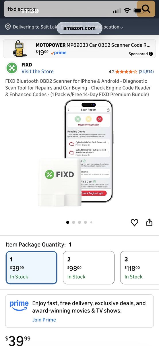 New fixd auto scanner in case! Perfect if you are looking to buy another vehicle and want to check it out first! This exact scanner is 39.99 or more Amazon rightnow as shown in photos! Don’t pay retail prices, call Dustin instead at 801-205-3404, I need it gone!