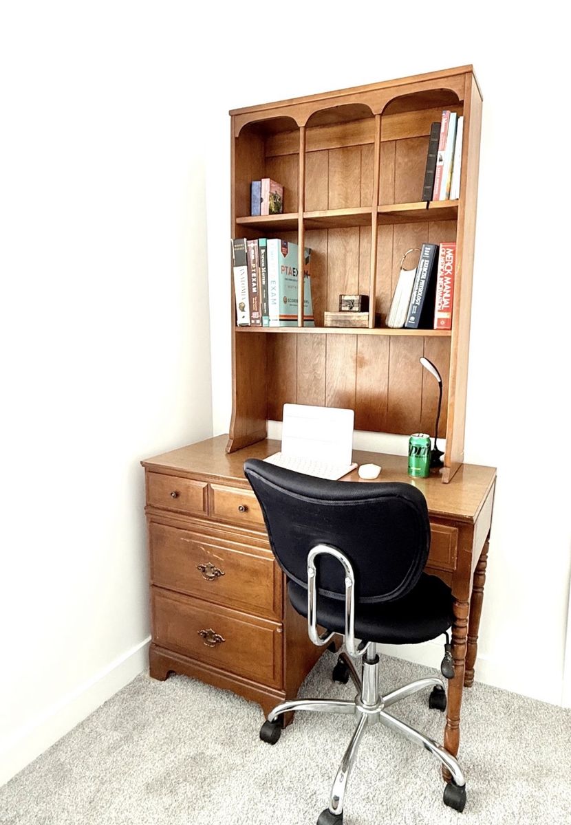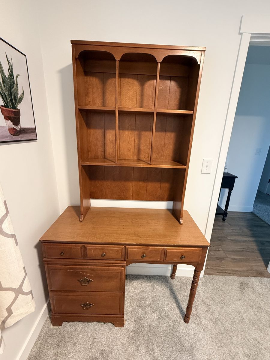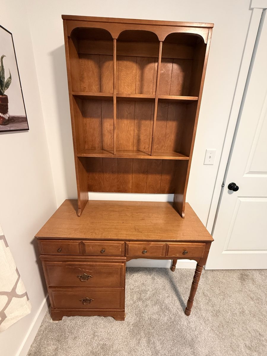 VenmoReally nice vintage desk with hutch in solid wood. This is a sturdy piece that’s been well made and still has a lot of life left.