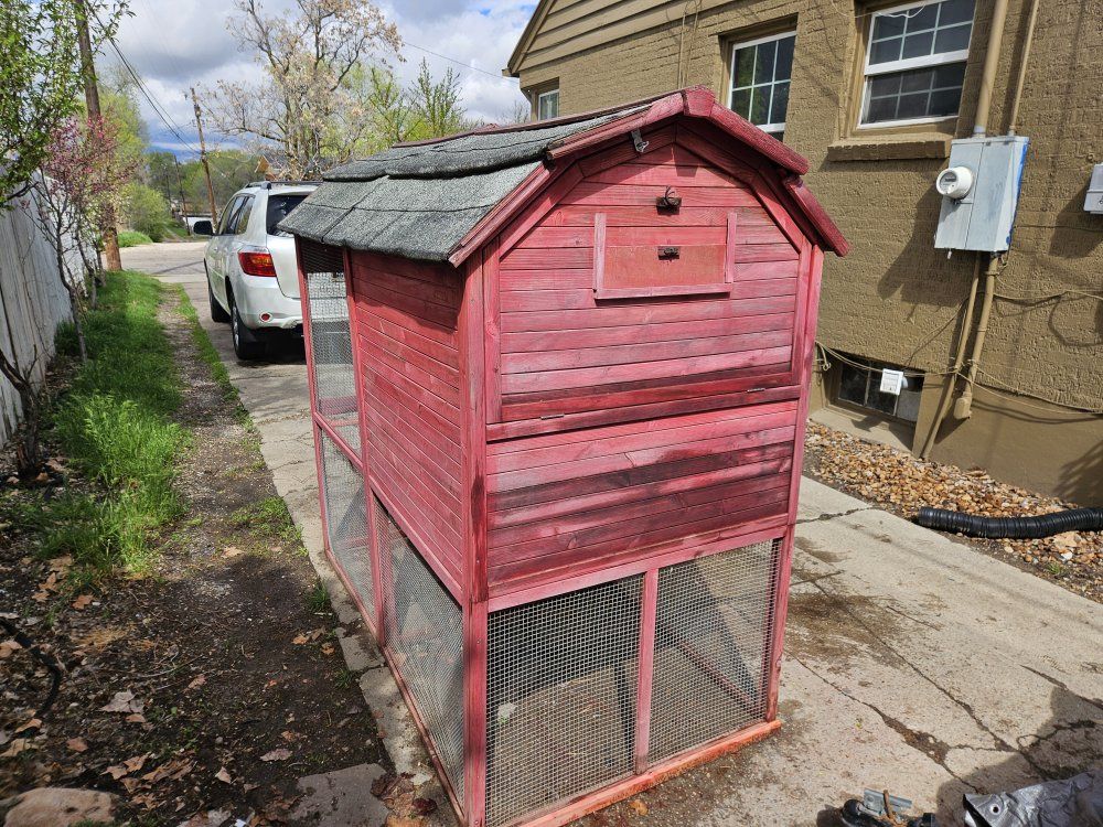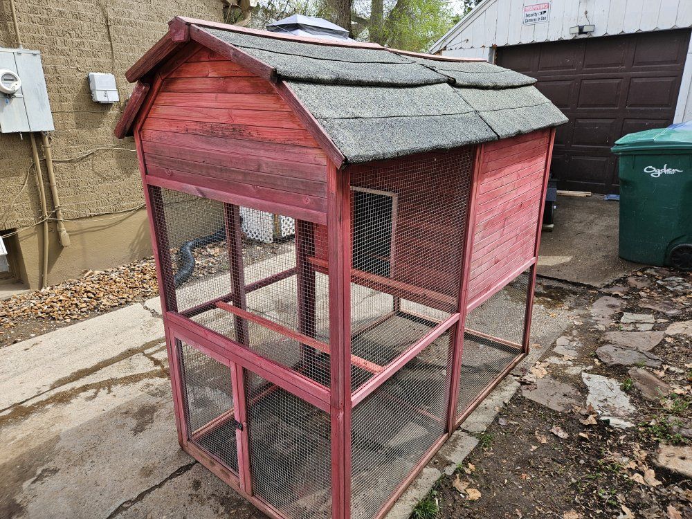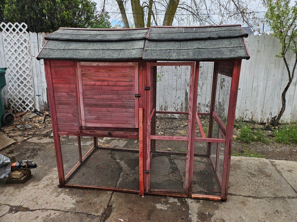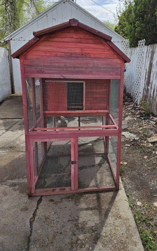 71" tall x 40" wide x 74" long Comes with chicken feeder