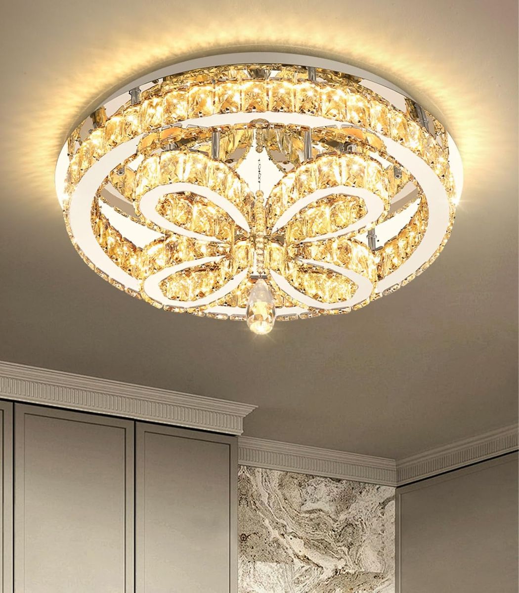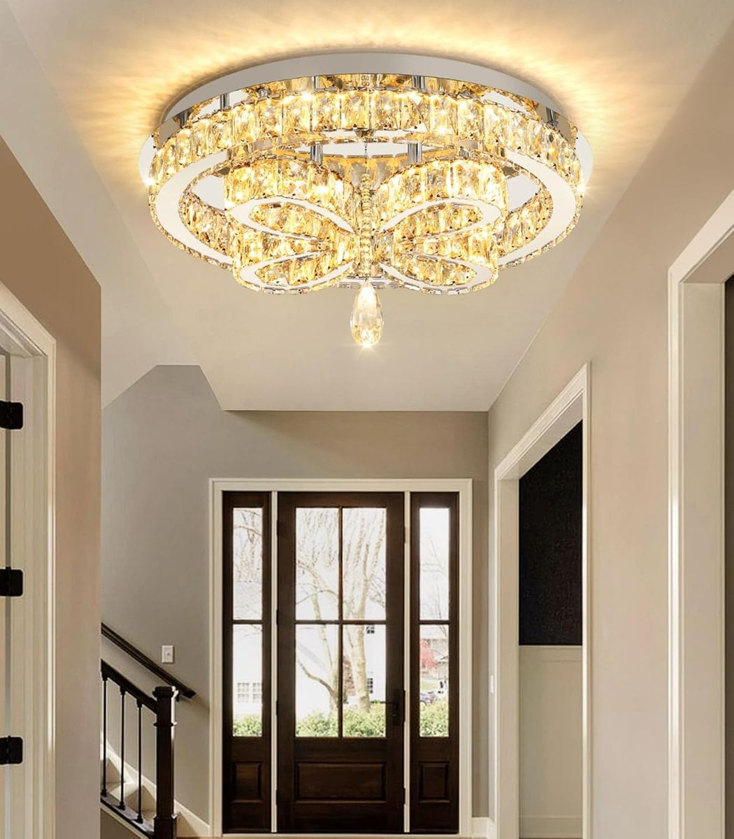 ApplePayModern Crystal Chandelier LED 2-Tier Flush Mount Ceiling Lighting Dimmable Pendant Light for Living Room Bedroom Dining Room Entryway Hallway