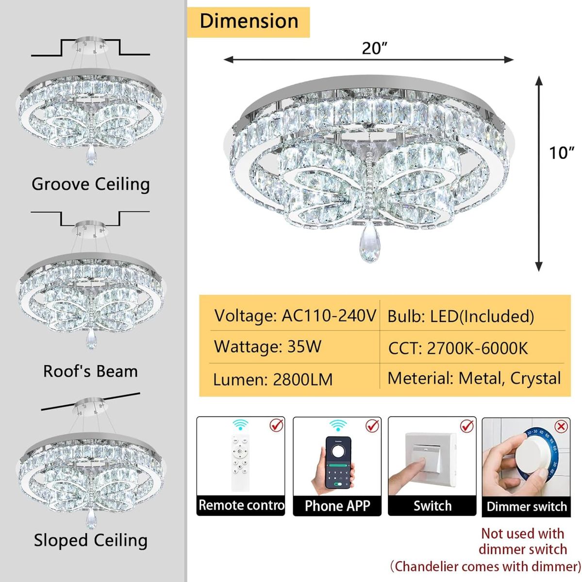 About this item - 2-Tier ChandelierOur 2-tier Hanging lights are meticulously crafted from premium stainless steel and adorned with exquisite crystals, featuring a distinctive crystal design on the second tier. This captivating design infuses your space with a touch of elegance and enhances the ambiance