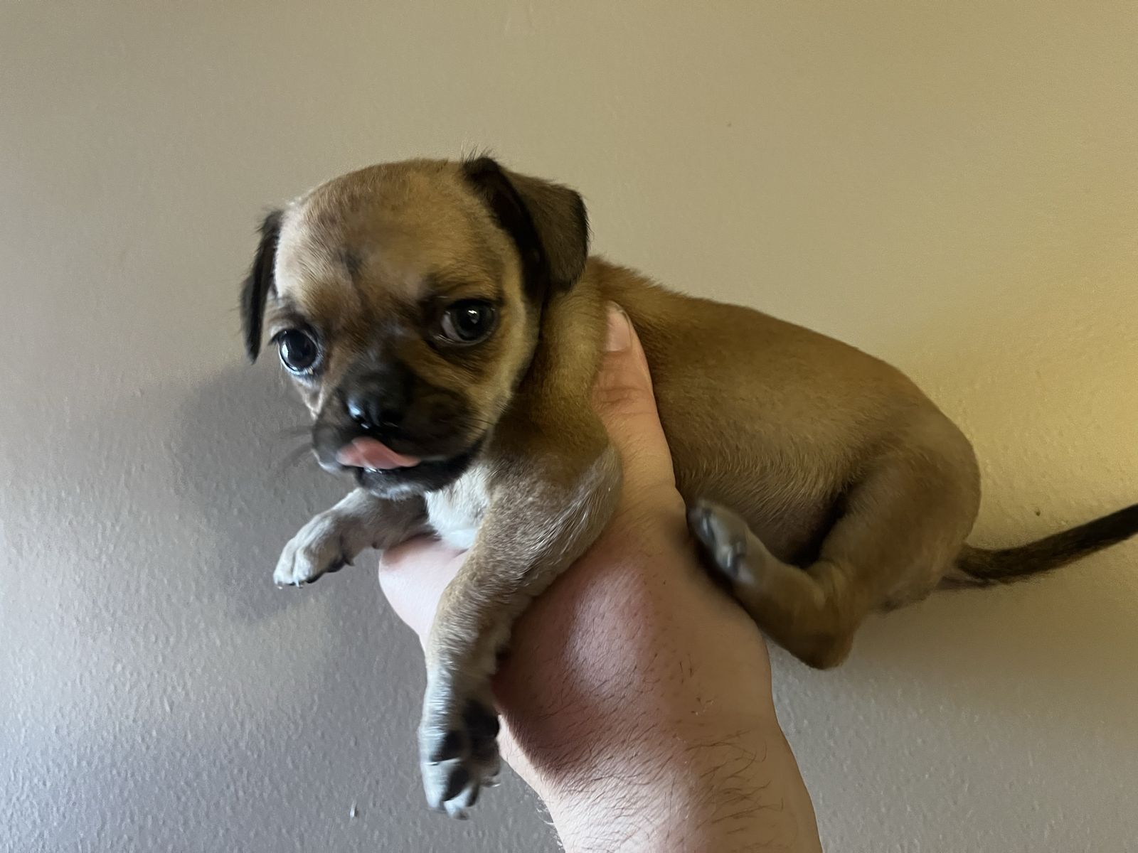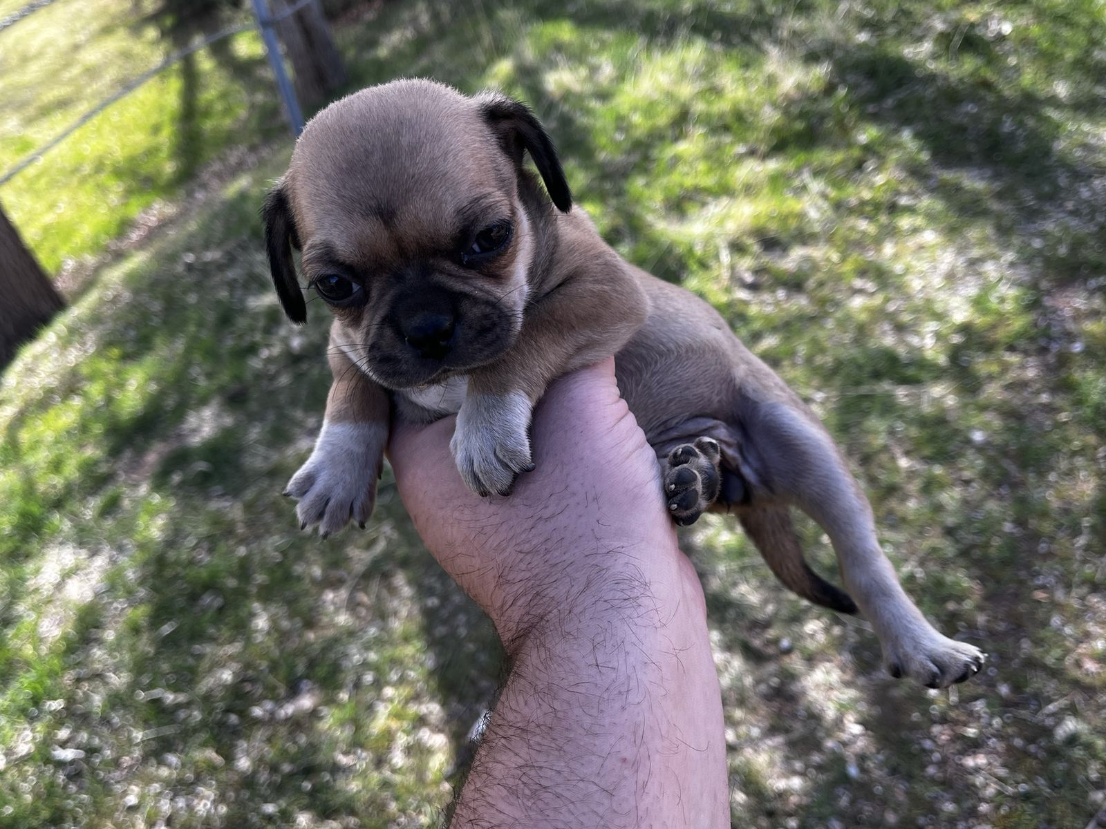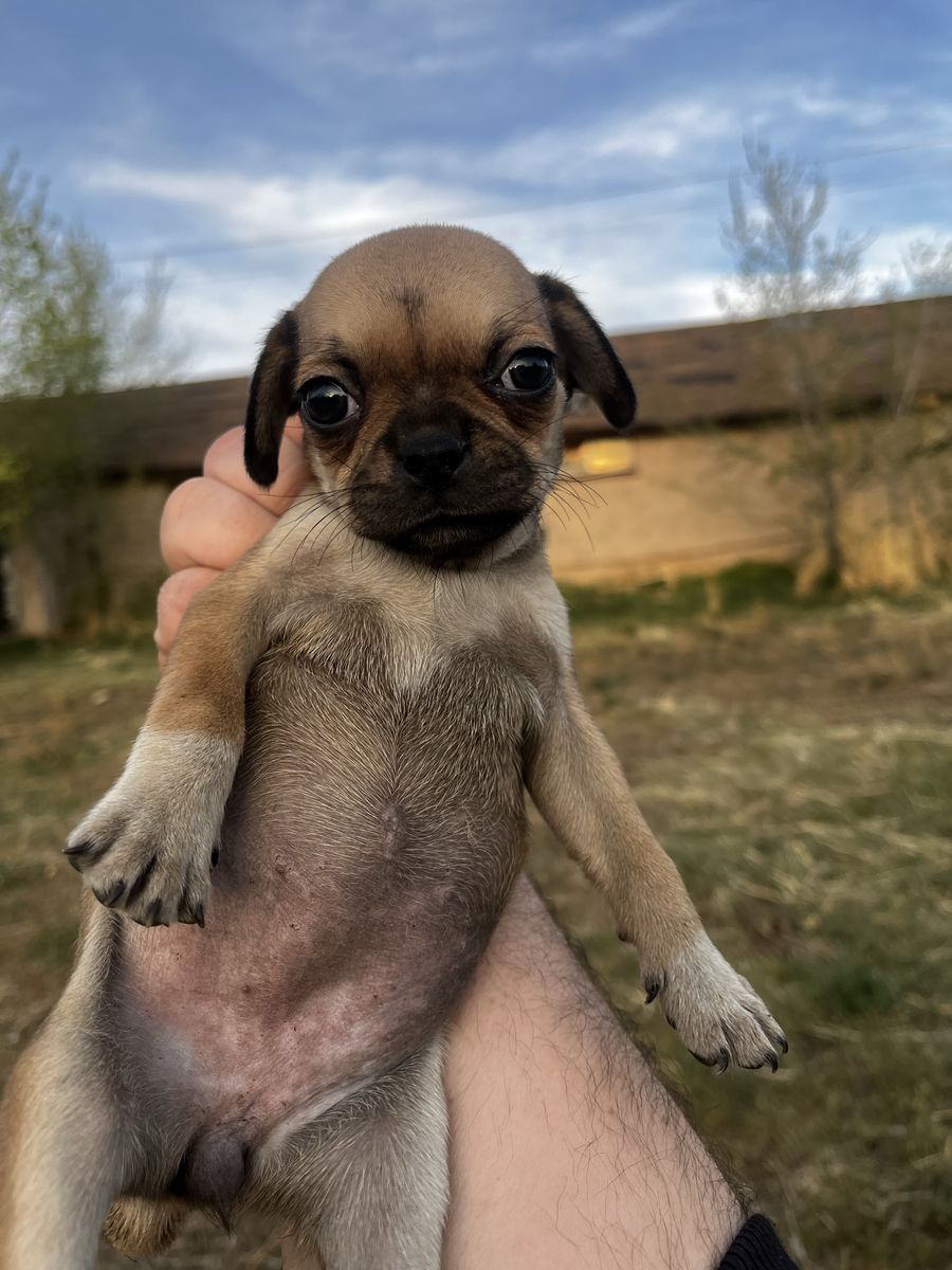 CashAppShe is tiny & adorable! Super affectionate & loves everyone! She is likely to be pretty small when grown as her parents were bigger when they were her age. She was born on Jan 30th, has her shots, deworming, eats solid food & is very healthy & active when she’s not napping! She may velcro dog as she loves to stay by your side. She is a sturdy little gal & holds her own around bigger puppies. Her mom is 1/2 Boston Terrier & half Chug (chihuahua/pug) & her father is a Chug. She was raised with her brothers & sisters that have already been rehomed as well as a litter of black pugs & always got along wonderfully! Serious inquiries only please! We can deliver to you if you need. We are hoping to rehome her soon because we need to travel in the next week or so. All serious inquiries can text me at 385-606-3222.