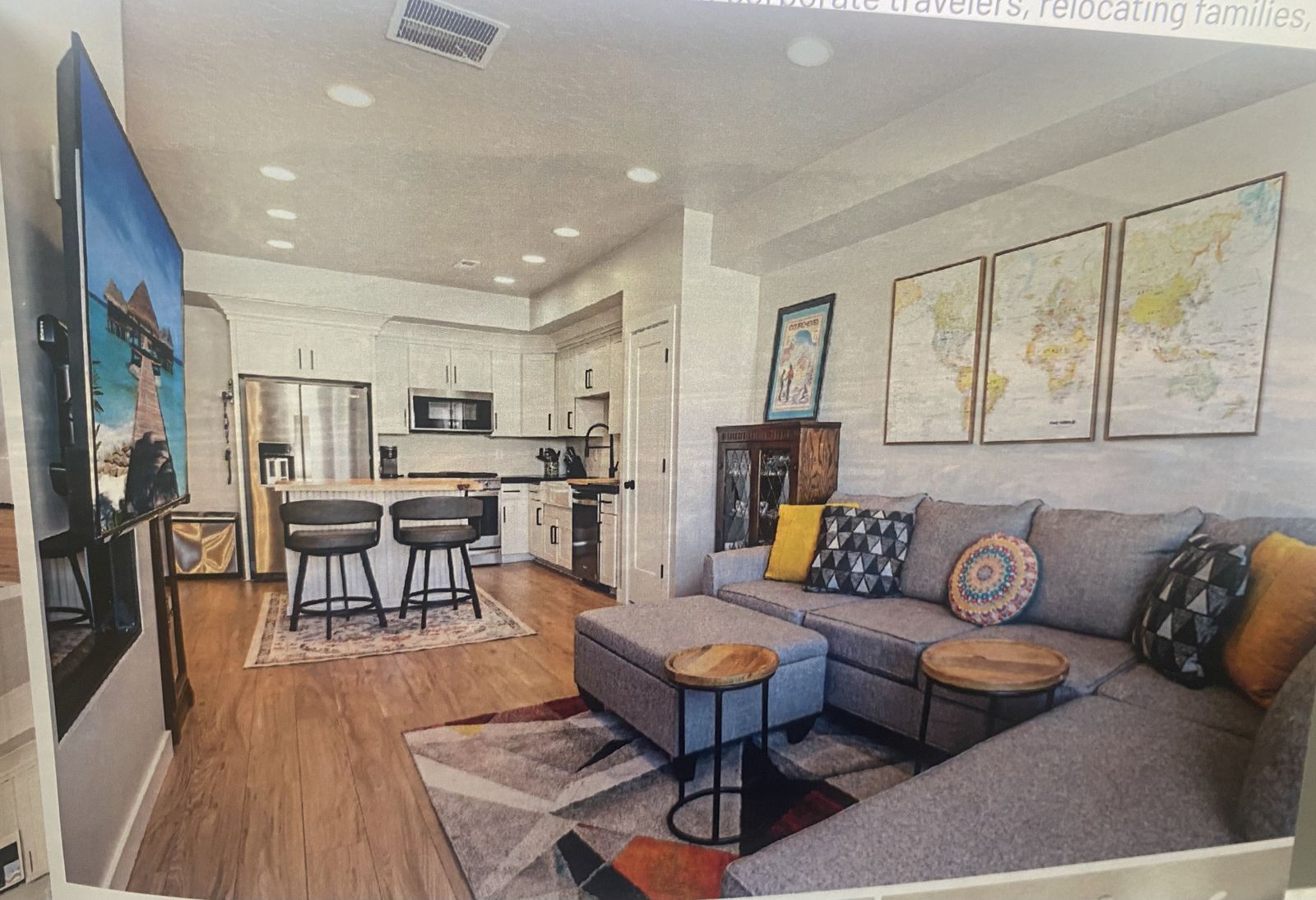 The indoor amenities continue to delight, with the living room as a cozy, relaxing haven. Sink into the comfortable sectional sofa while watching your favorite show or movie on the TV or gather around the mesmerizing fireplace to enjoy its warm glow and embrace the tranquility it brings.