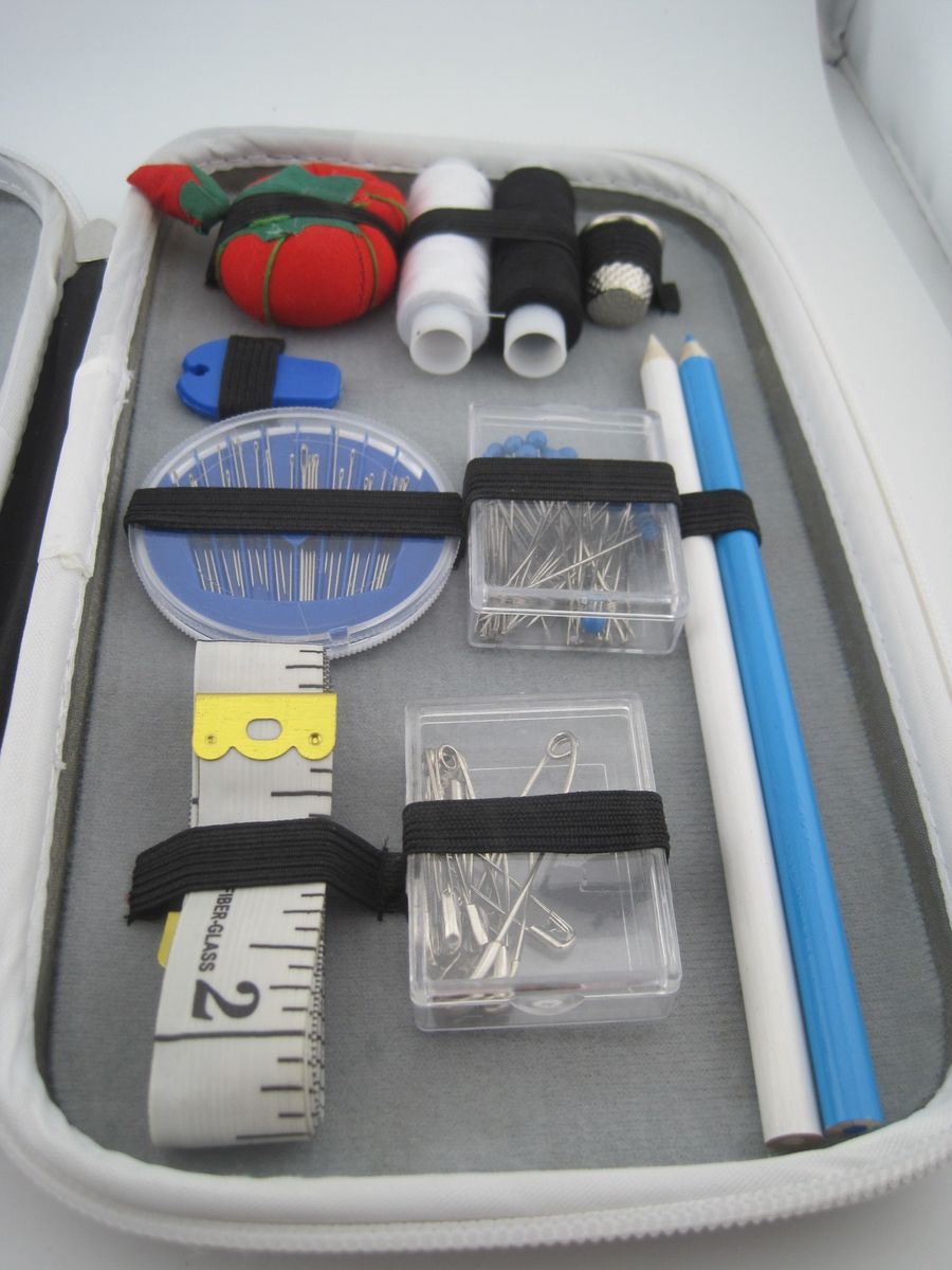 The Travel & Home White Sewing Kit Case is a practical and compact collection of sewing essentials, perfect for both travel and at-home use. This kit includes essential items such as needles, thread, tape, scissors, pins, and pencil, all neatly organized in a convenient case. Made in the United States, this sewing kit is a must-have for anyone who enjoys sewing and crafting projects.