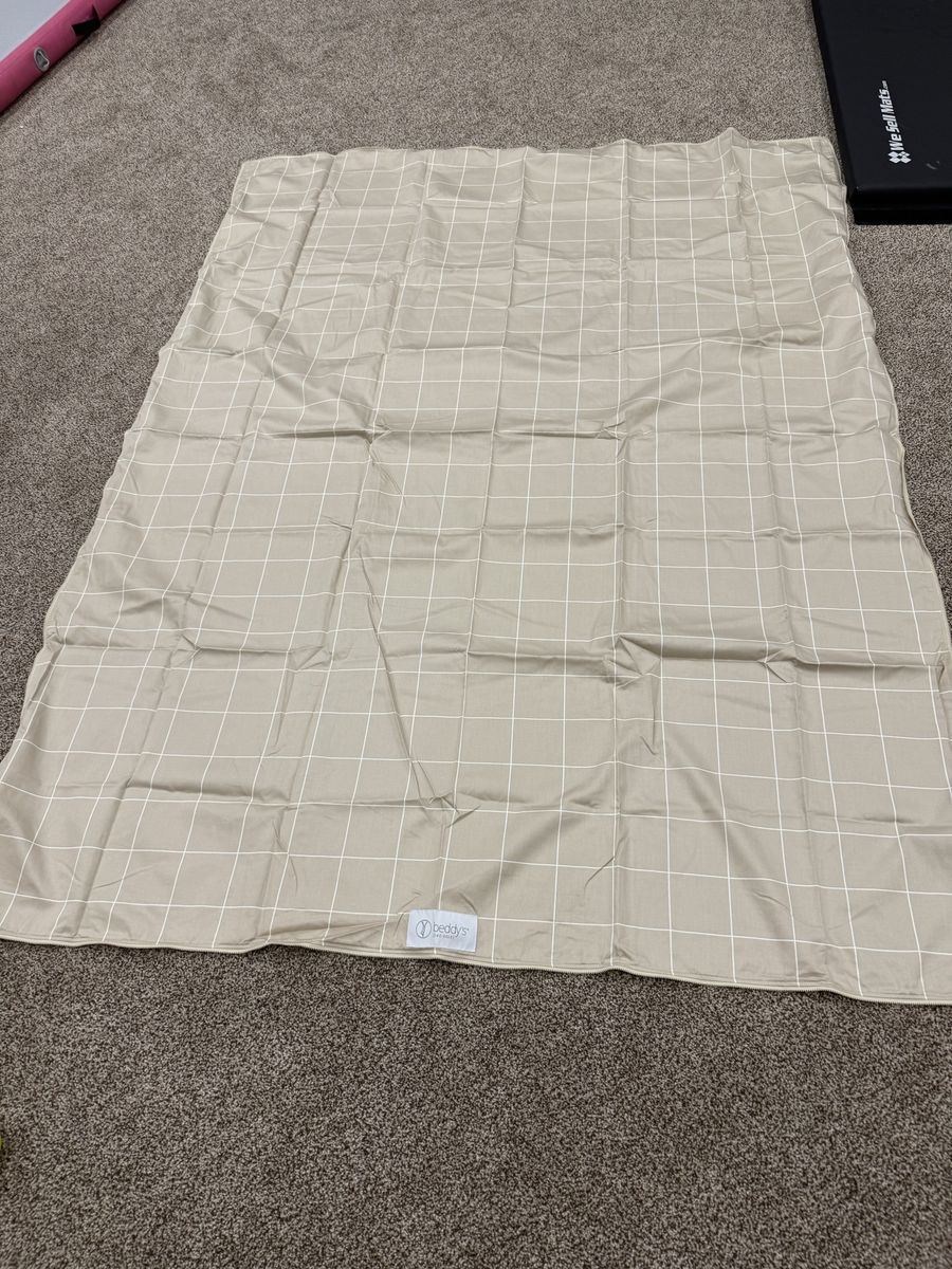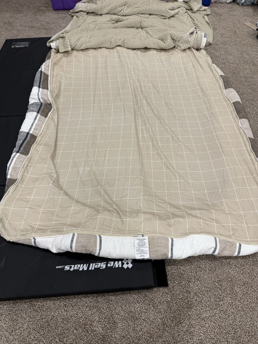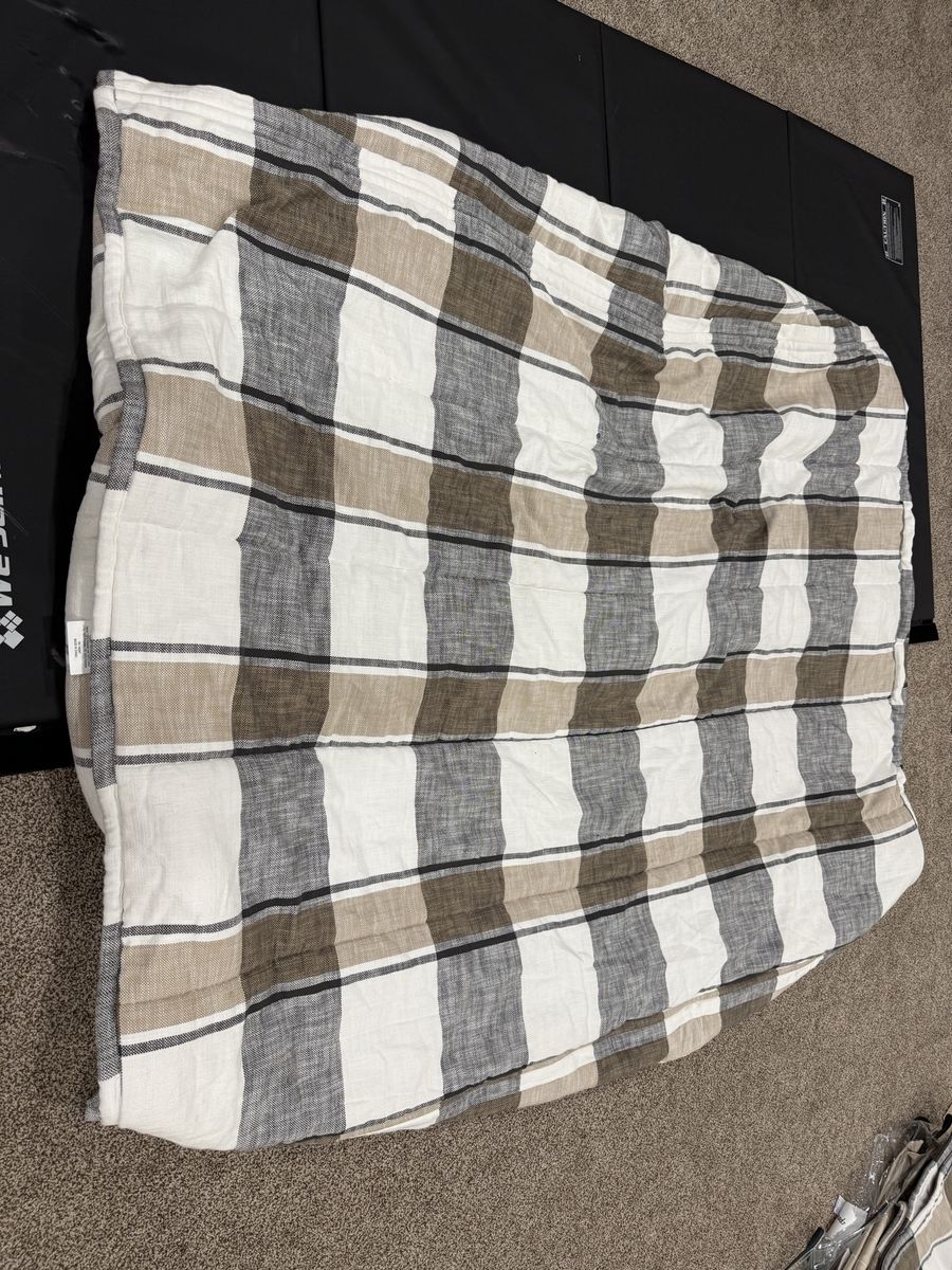 Includes 2 shams and 2 cases and 2 sheets. Top has a few loose threads and a possible stain. Needs to be lint rolled. Gently used. MAR55