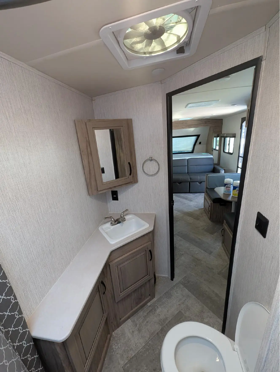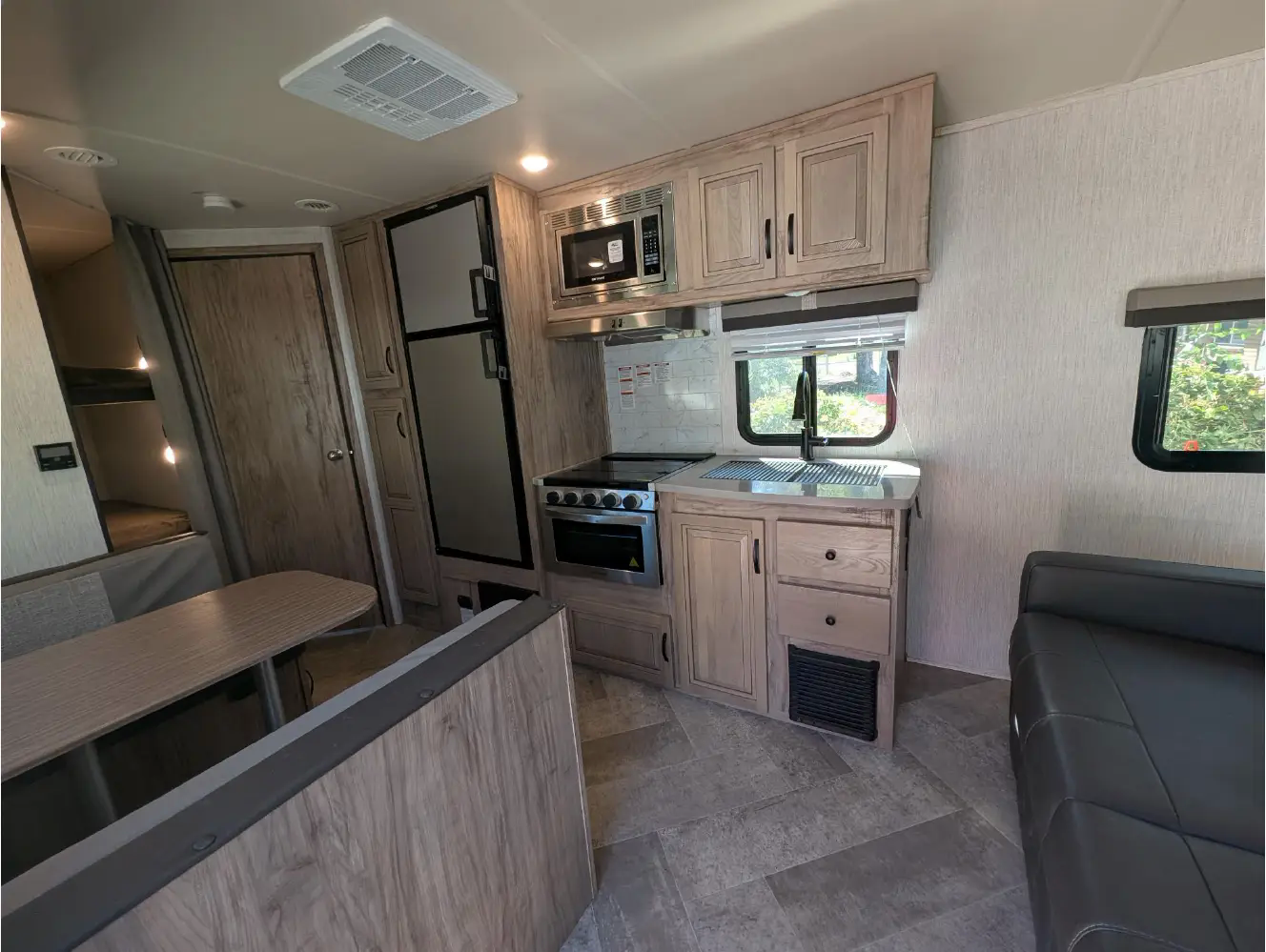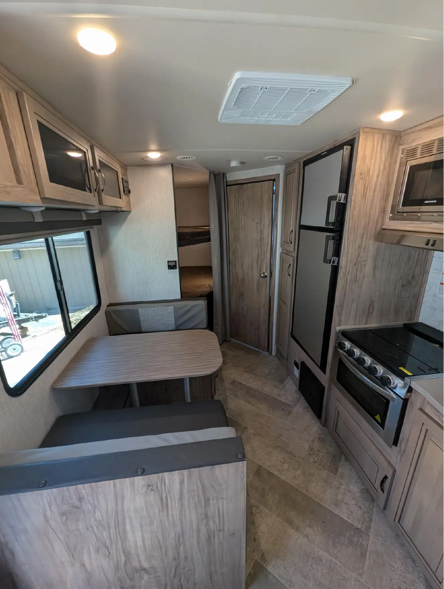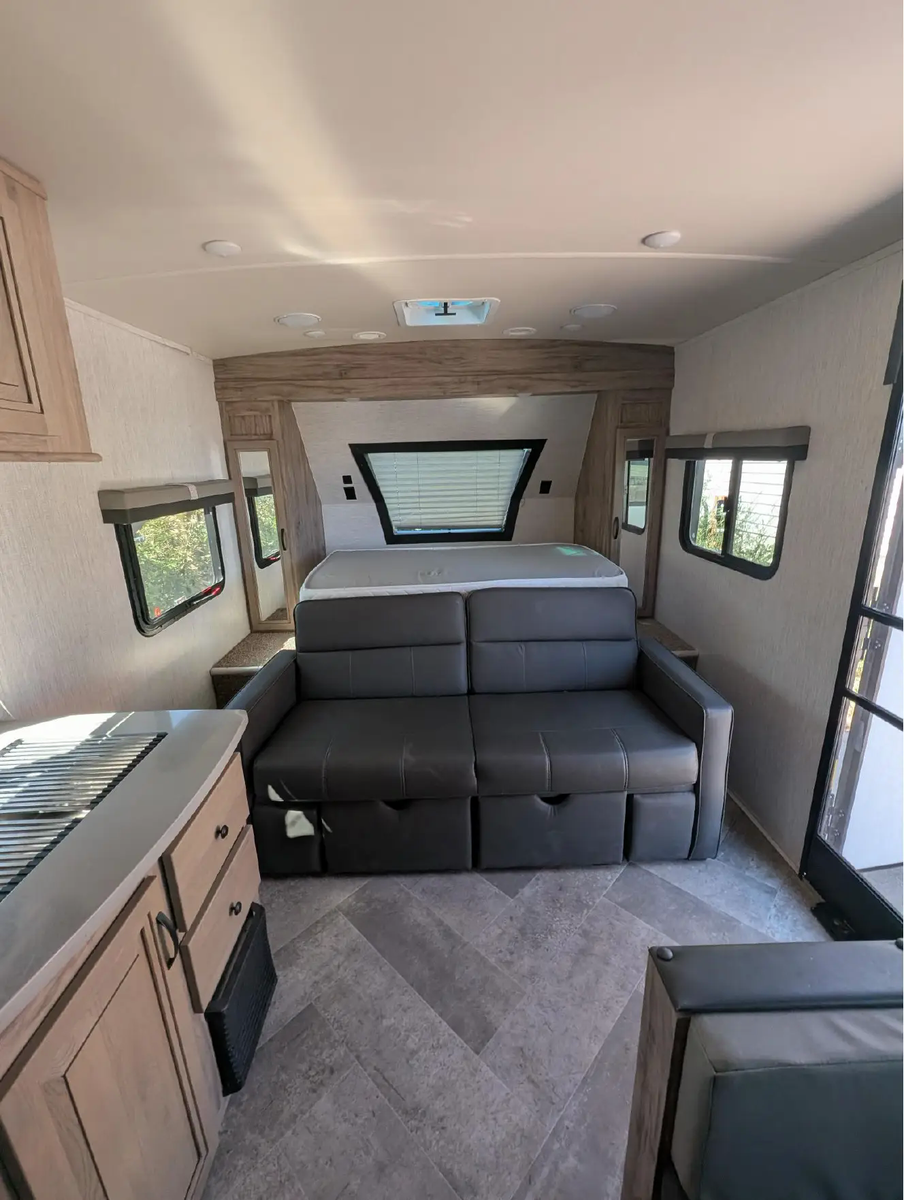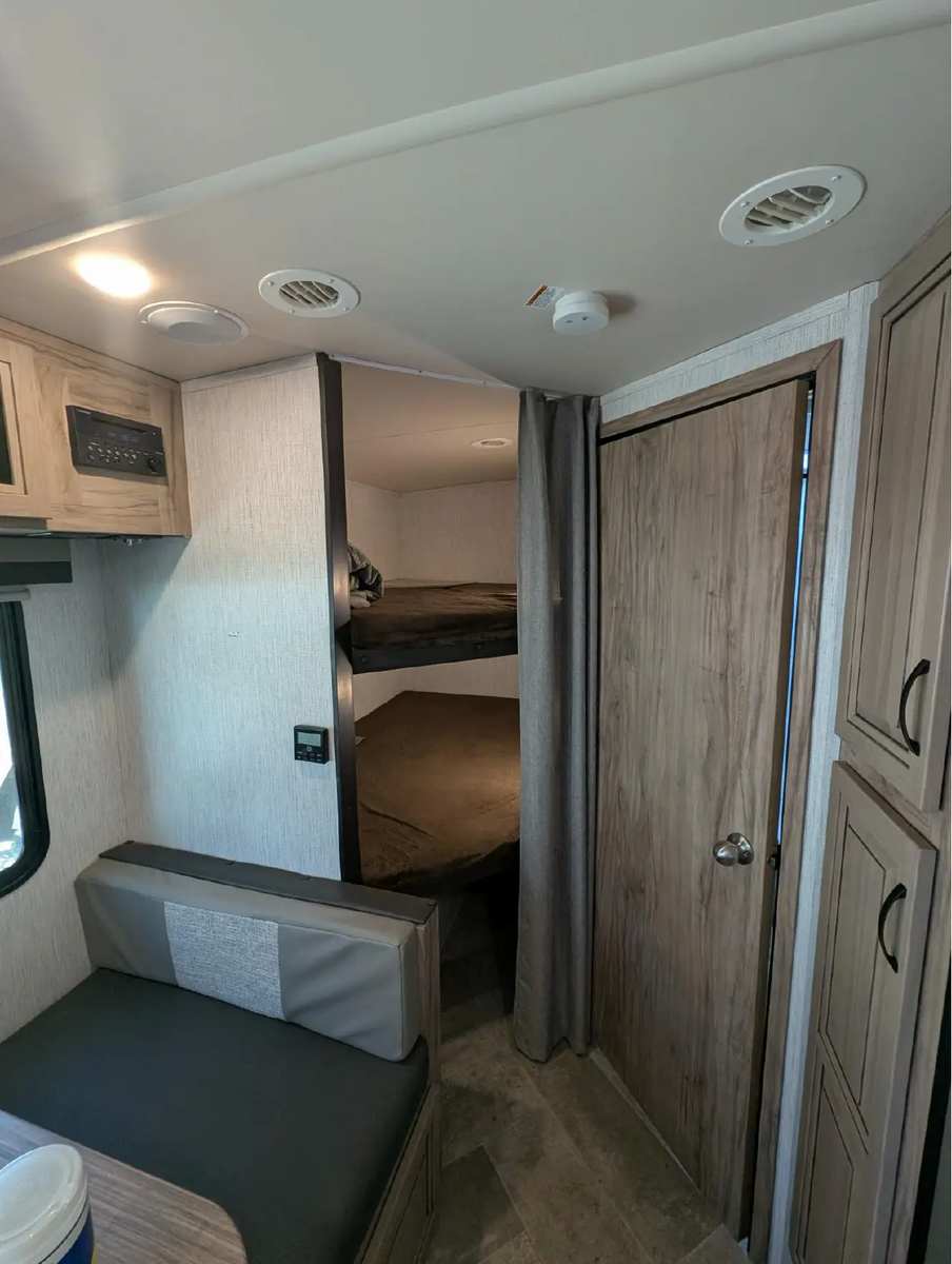 26ft bunkhouse Torsion axles Max Air Fan Murphy Bed Porcelain toilet. Tank heaters We chose this one over the other bunk house models we looked at because all the little upgrades (like Max Air, Porcelain toilet, ducted air, nicer murphy bed couch) made it not only a better value but overall nicer living experience. Specs https://www.jdpower.com/rvs/2021/palomino-by-forest-river/m-217bh/6607010/specs