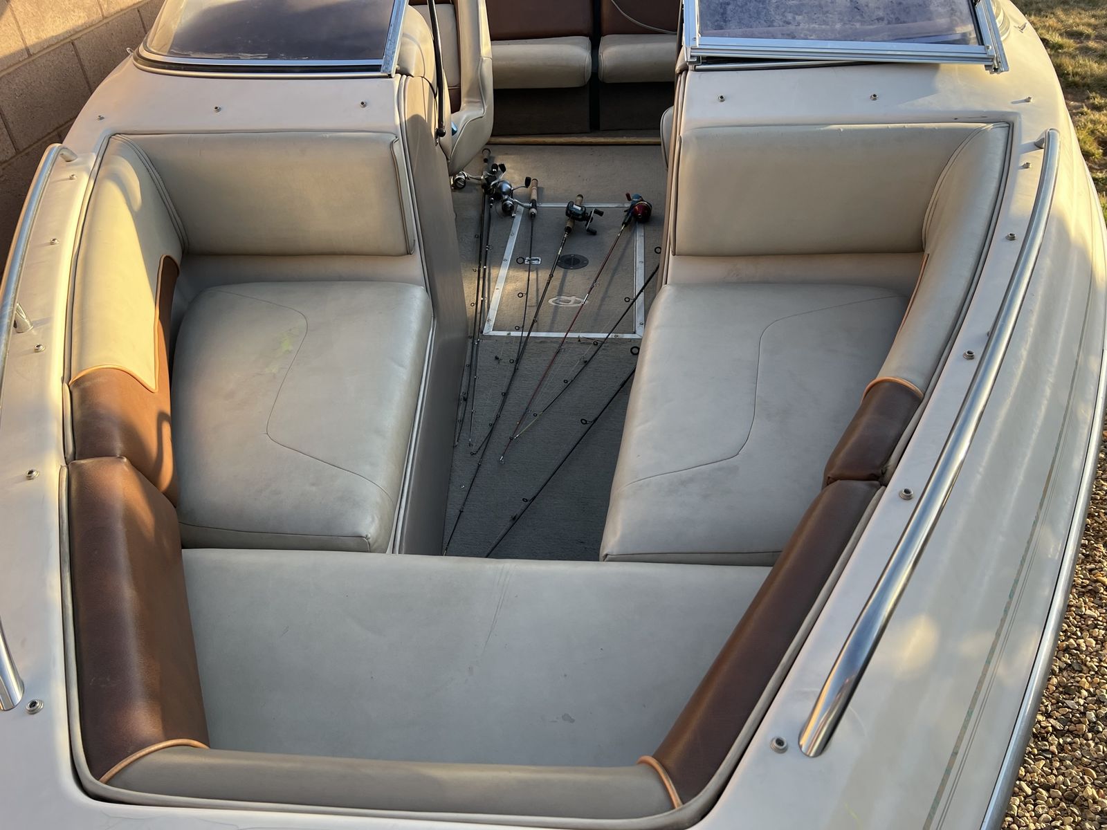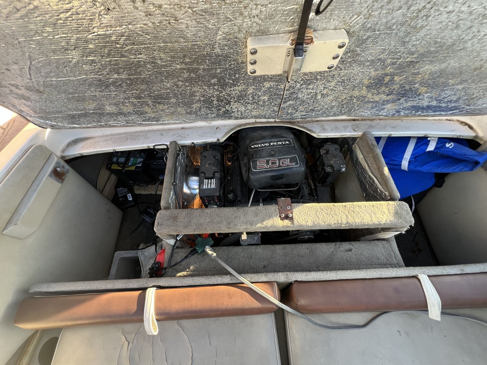 This is a great starter boat. It has an upgraded motor 5.0 L V8. It runs and drives. Unfortunately, there is water in the engine, so it will need an engine rebuild. I can start it for you if requested. If you are a mechanic or no a mechanic, this will be a perfect fit to get you quickly on the water. I have replaced a lot of the engine components let me know if you have any questions. Title for trailer and boat in hand.