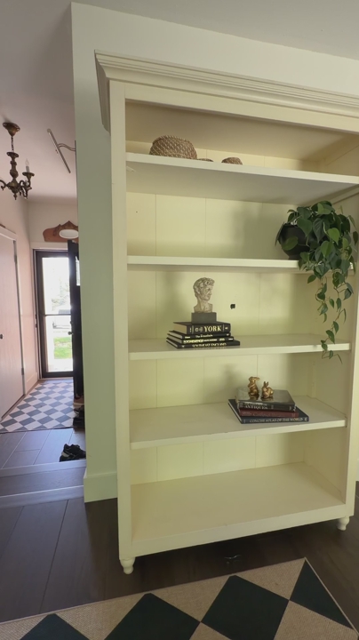 VenmoOff white pottery barn bookcase with four adjustable shelves.