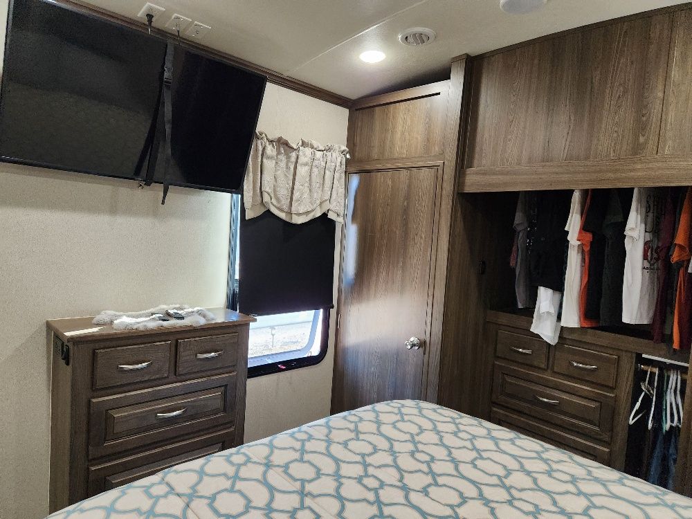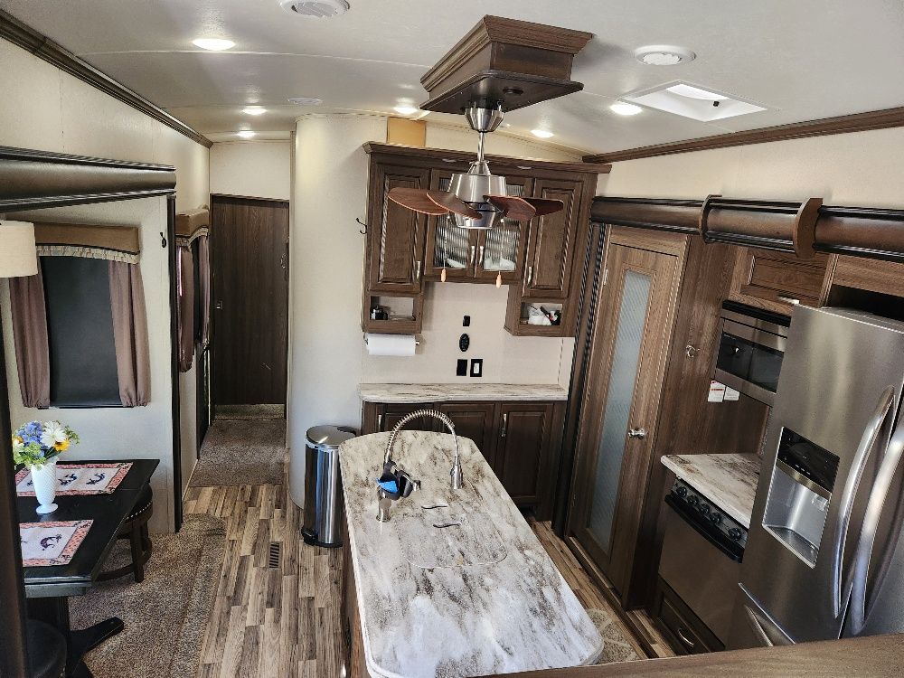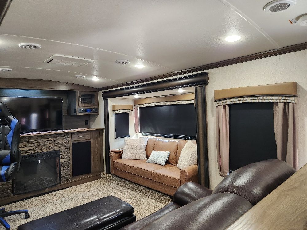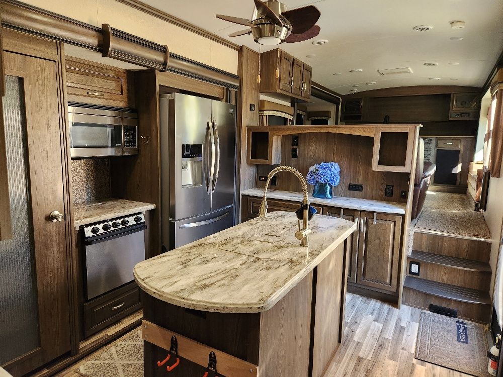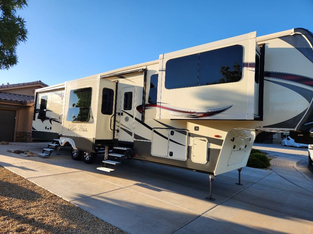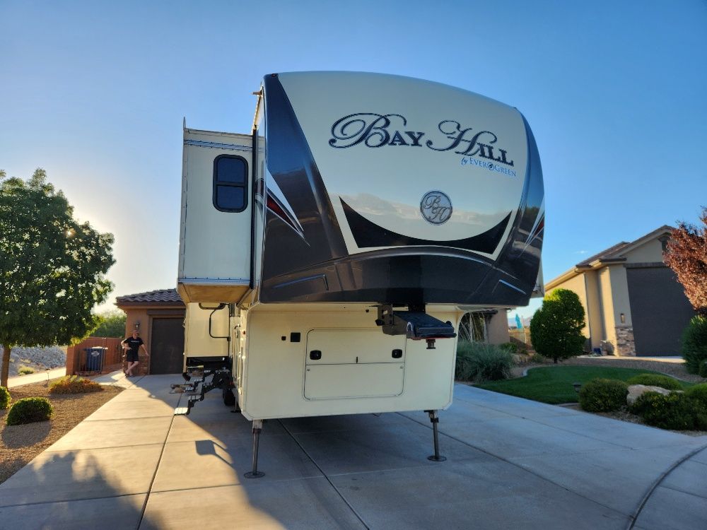 2017 Bay Hill 379FL all-weather fifth wheel by Evergreen has a front living area, rear master, and five slides. This Bay Hill comes with a washer, dryer, dishwasher, residential refrigerator, and a transferable 4-year extended warranty. Seller can deliver.