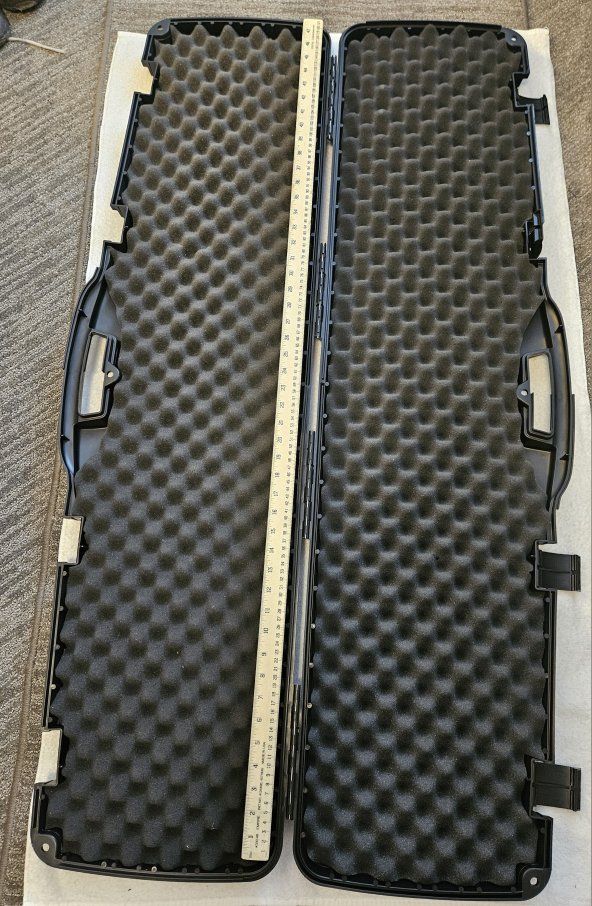 VenmoThis case will accommodate two rifles or shotguns. Inside dimensions are about 48" X 12" Foam egg crate interior. Lockable at 3 points with padlocks (not included) used once.