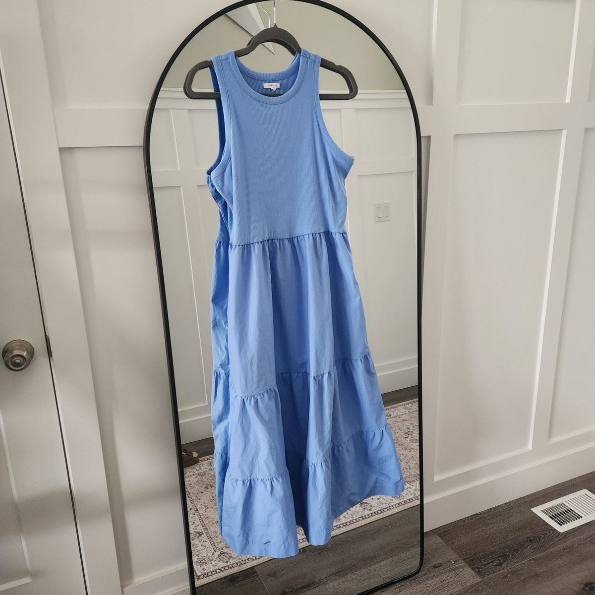 I have 3 dresses for sale. The blue tank dress is Maurices brand, it is tiered and has pockets, it is not lined. It is a regular size XL. very versatile ad its stretchy. fits M to XL. Incuded is a white denim jacket, size M, fits more like a large. asking $40 for bo5h jacket and dress or $20 each. 2nd item is a cream and floral dress, it is Maurices brand size regular M. It is lined and has pockets. Asking $20. 3rd item- The black floral maxi dress is not lined and does not have pockets. its a size XL. asking $15. All in nearly new condition. worn a few times each. lost weight and need to rehome.