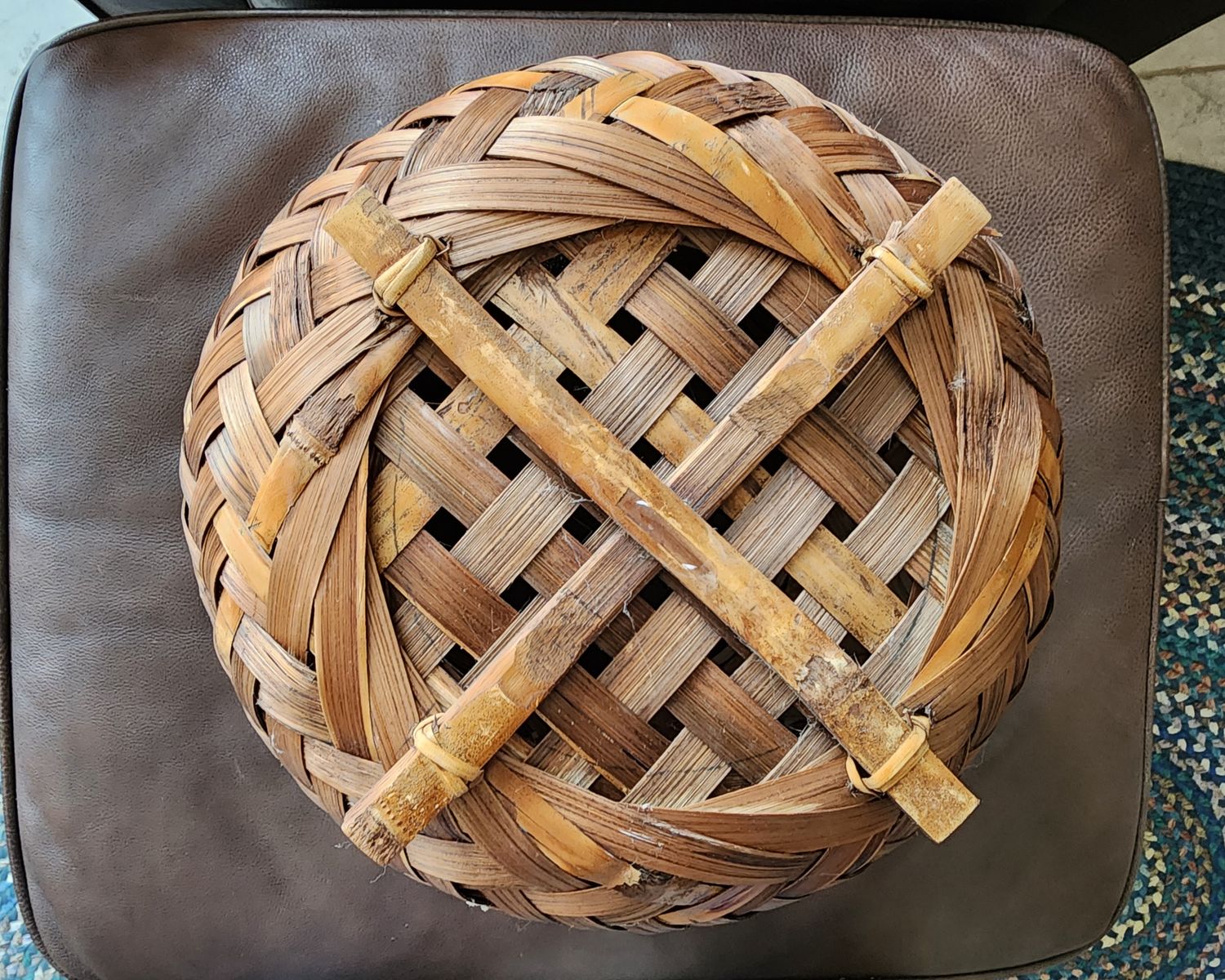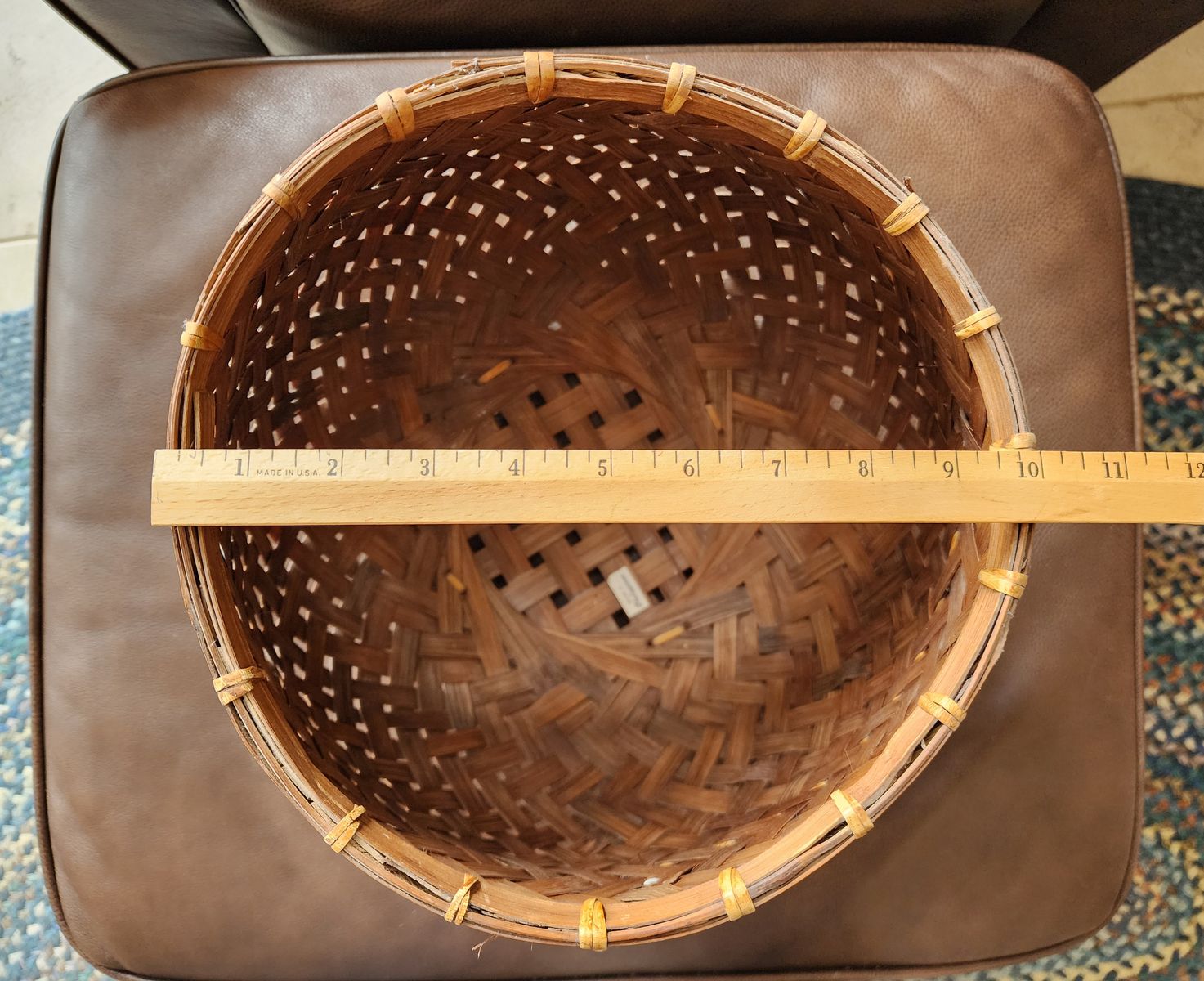 VenmoLarge decorative woven basket. 11" tall, 10" diameter round opening.