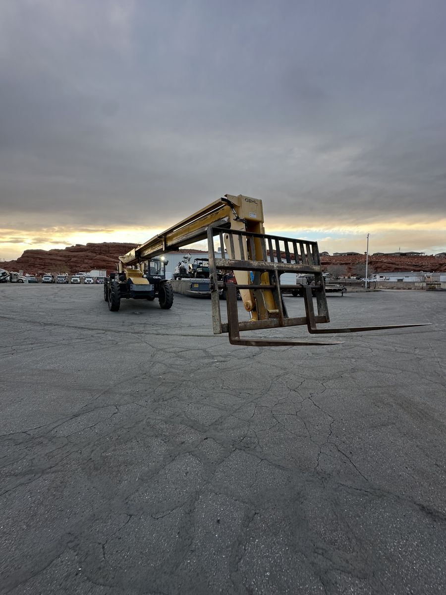 2012 GEHL TELEAHANDLER 42' REACH, 11k HOURS, NEW SOLID TIRES, 4 WHEEL STABILAZERS, ALL WHEEL DRIVE, RUNS AND FUNCTIONS WELL