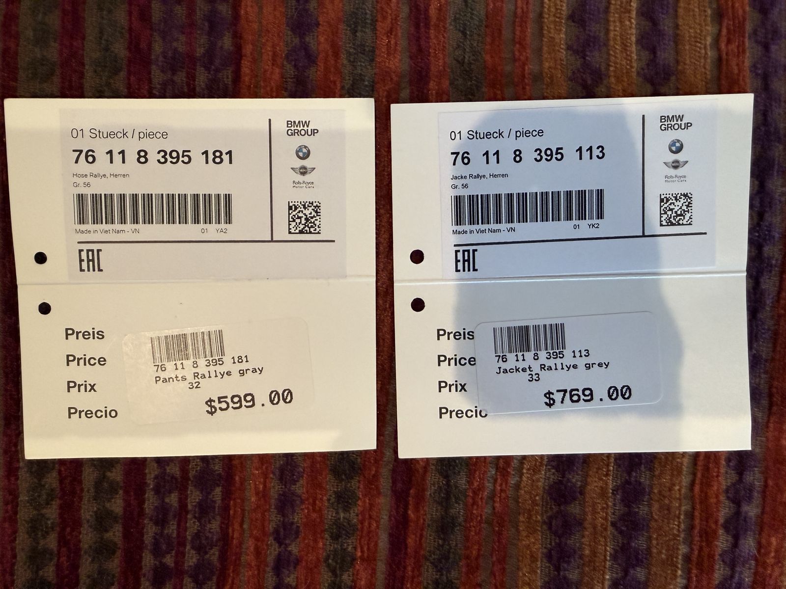VenmoSelling my BMW Ralleye Jacket & Pants. Bought new in 2020 - Light use. Comes with rain shell for jacket and rain liner for pants. Euro size 56 for both jacket and pants. US Size Large for jacket and Size 36 for pants I am 6 ft and 195 lbs and fits me with room to wear layered clothing under if needed Asking $295 for entire set. Call or text Marco if interested.