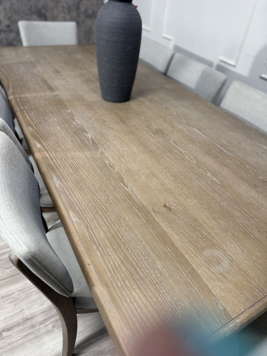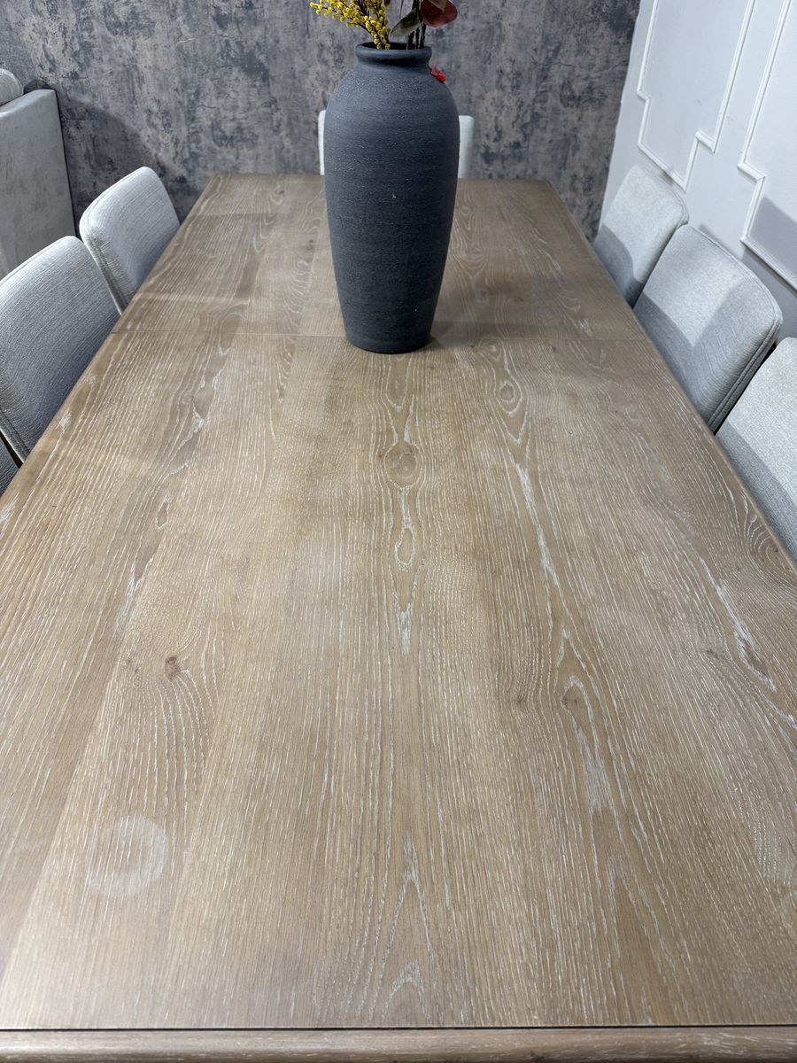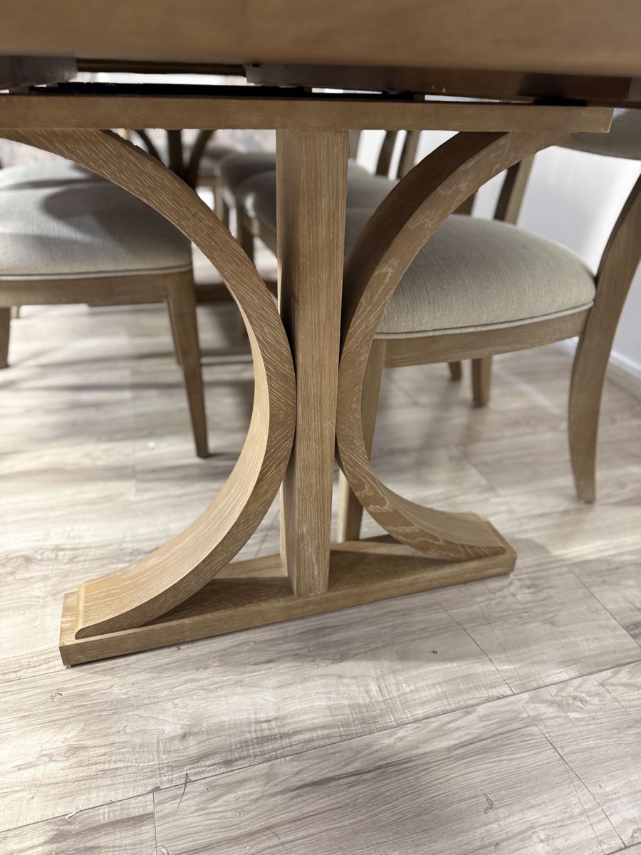 Introducing the Mercer Dining Set by Pike & Main, a perfect blend of elegance and functionality. This stunning set boasts a natural finish, showcasing the beauty of oak veneers and solid rubberwood. Its easy transitional styling effortlessly complements any décor, while the upholstered chairs offer supreme comfort for your dining experience.. Elevate your dining space with the Mercer Dining Set, where timeless design meets modern convenience.