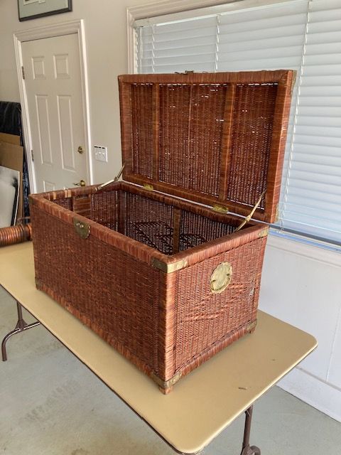 Wicker foot locker. Sturdy. Width = 36", Depth = 20", Height = 19