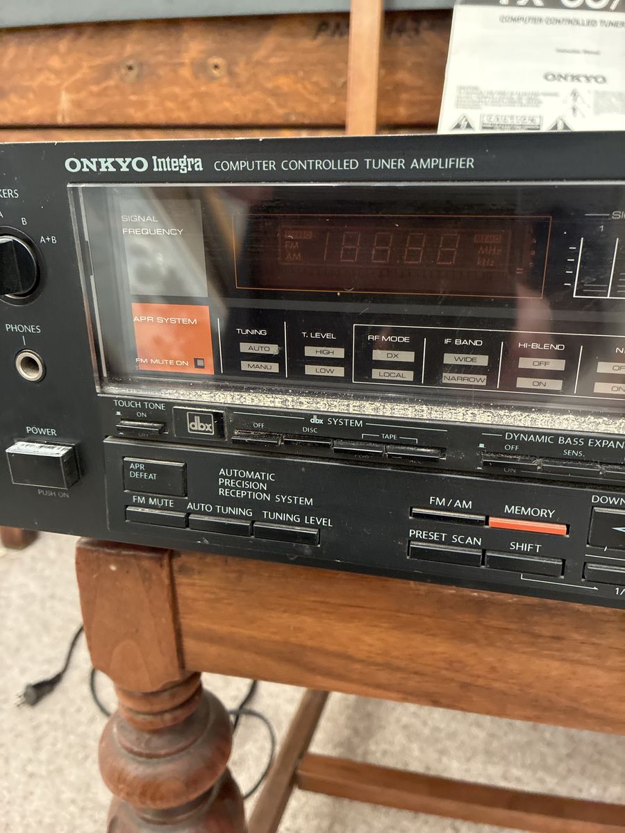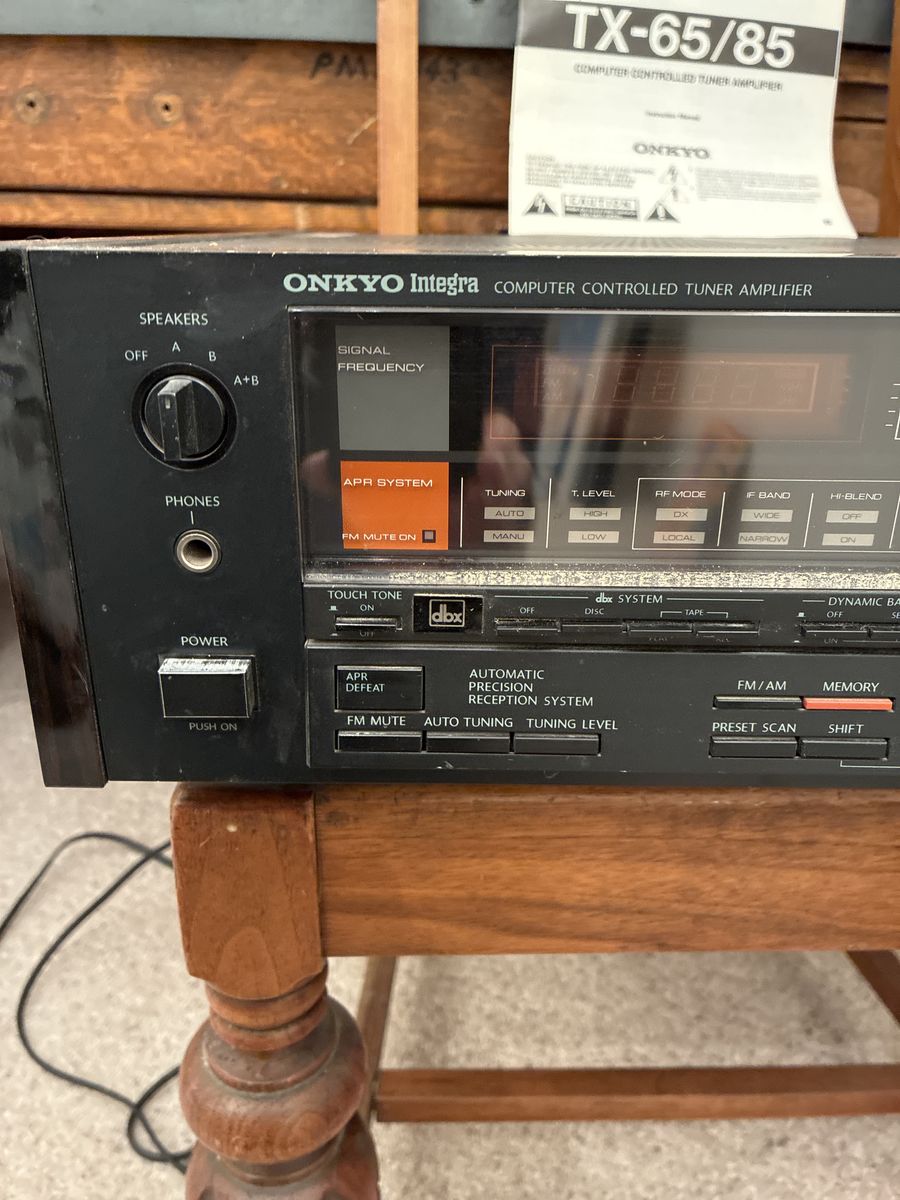 ZelleTop of the line Onkyo TX85 stereo receiver. Excellent condition with owners manual. 80 watts per channel. Mahogony sides on this classic