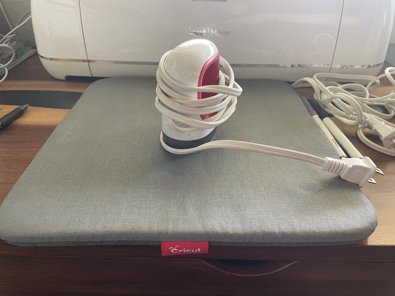 Cricut Maker: -Power Adapter + USB Cord -2 pens: Silver + Black -Rotary Blade -Knife Blade -Scoring Wheel 1 -3 Machine Mats: LightGrip, StandardGrip, FabricGrip -Cricut EasyPress Mini + EasyPress Mat